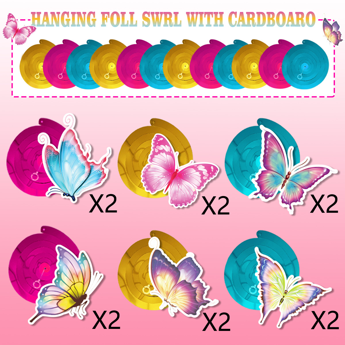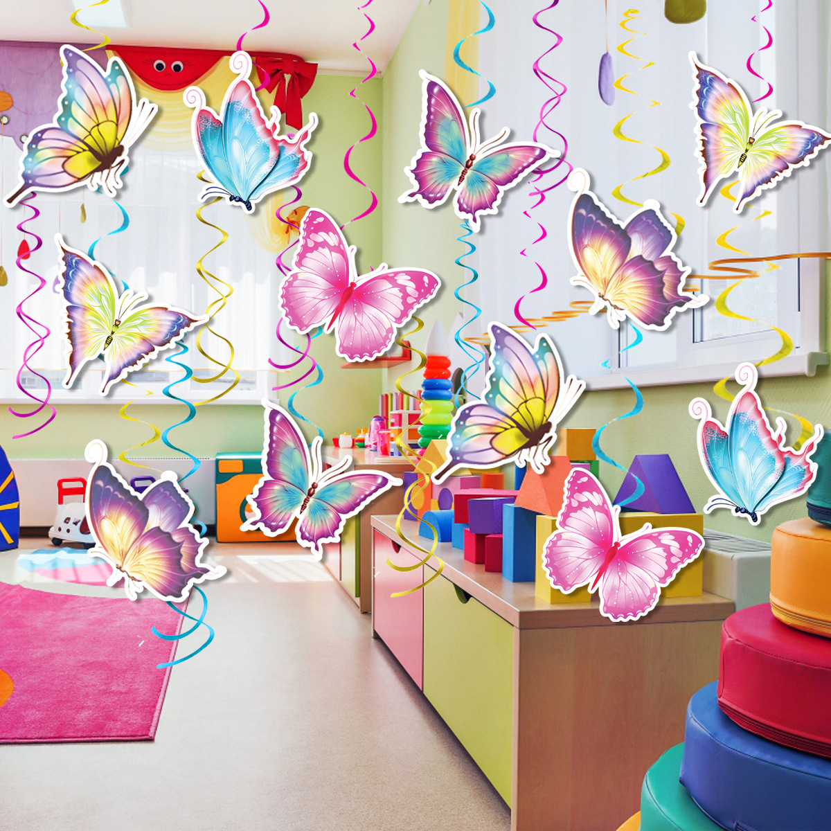새로운 나비 테마 파티 장식 펜던트 봄 티 파티 나비 나선형 펜던트 매달려 카드 장식