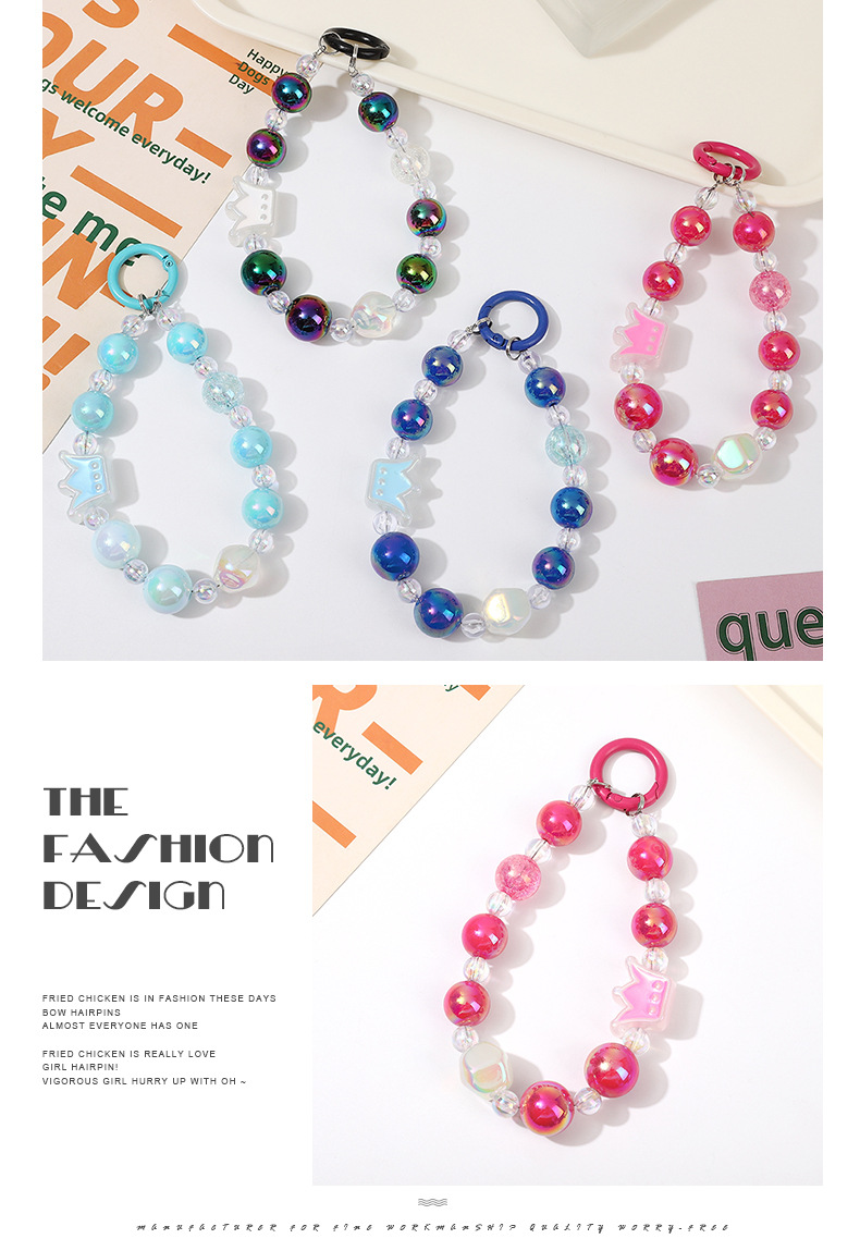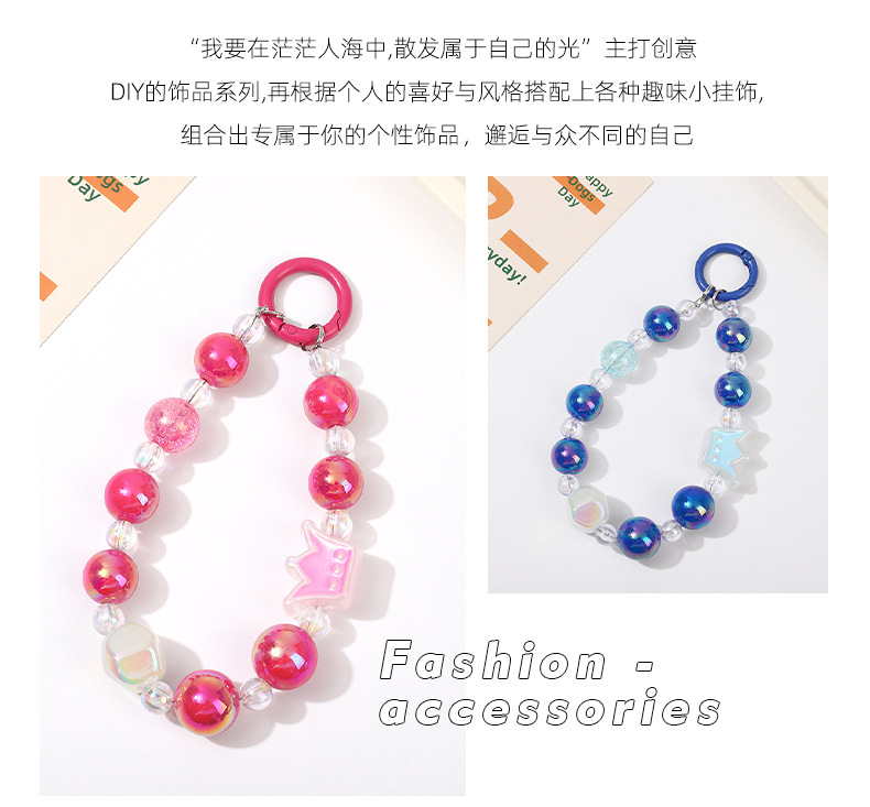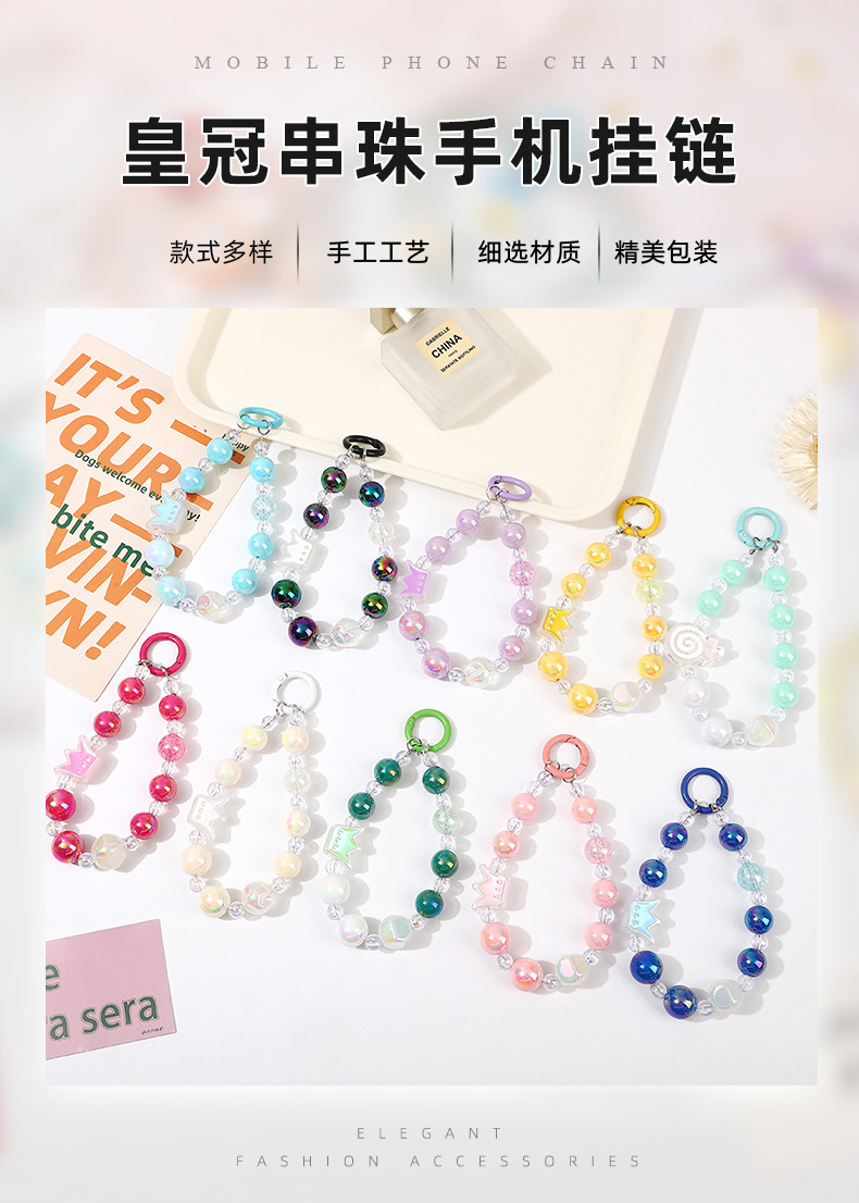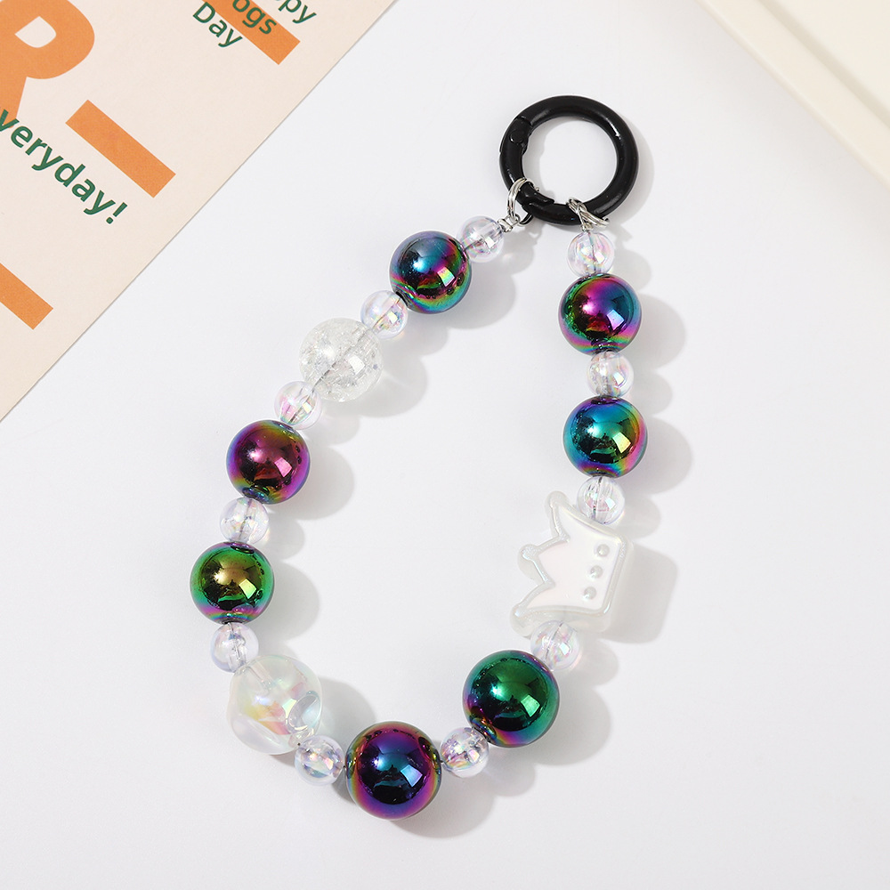 크라운 비즈 체인 체인 체인 멀티 컬러 만화 소녀 스타일 휴대 전화 장식품 카메라 키 체인 휴대 전화 끈 여성스토어 가기