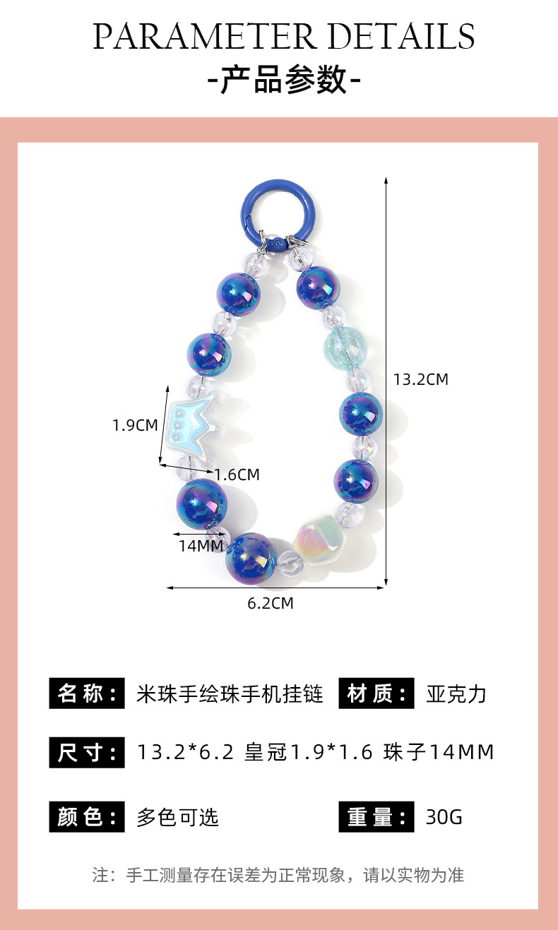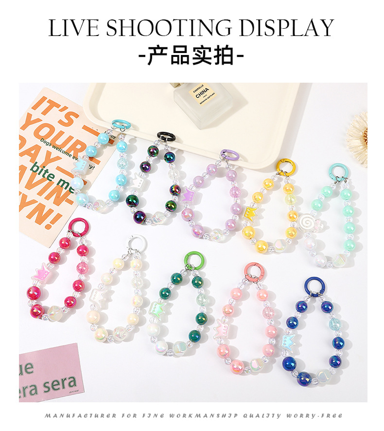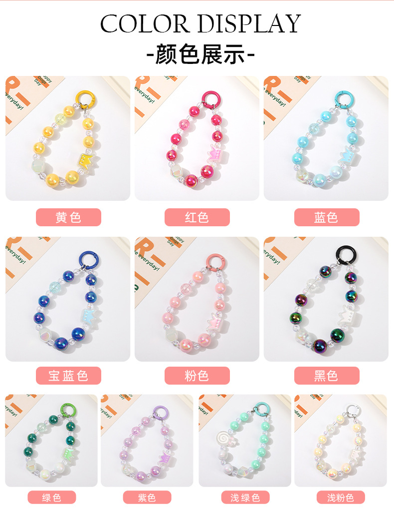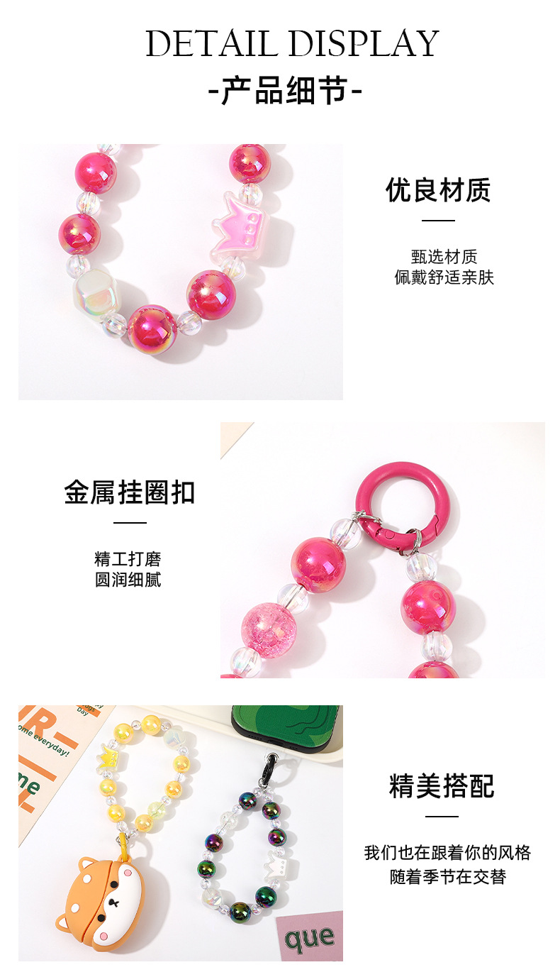 크라운 비즈 체인 체인 체인 멀티 컬러 만화 소녀 스타일 휴대 전화 장식품 카메라 키 체인 휴대 전화 끈 여성스토어 가기