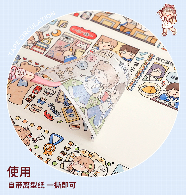 새로운 티라도 테이프 내 책상 친구, 귀여운 소녀 심장 저널 테이프 고구마 스티커 저널 테이프