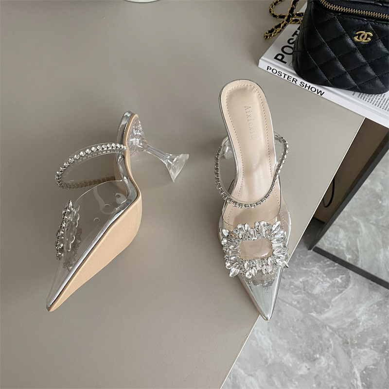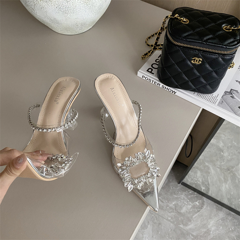 2024 포시즌 슈즈 워터 컵 힐 라인 스톤 버클 투명 여성 가방 발가락 슈즈 재고 35-39 사이즈스토어 가기