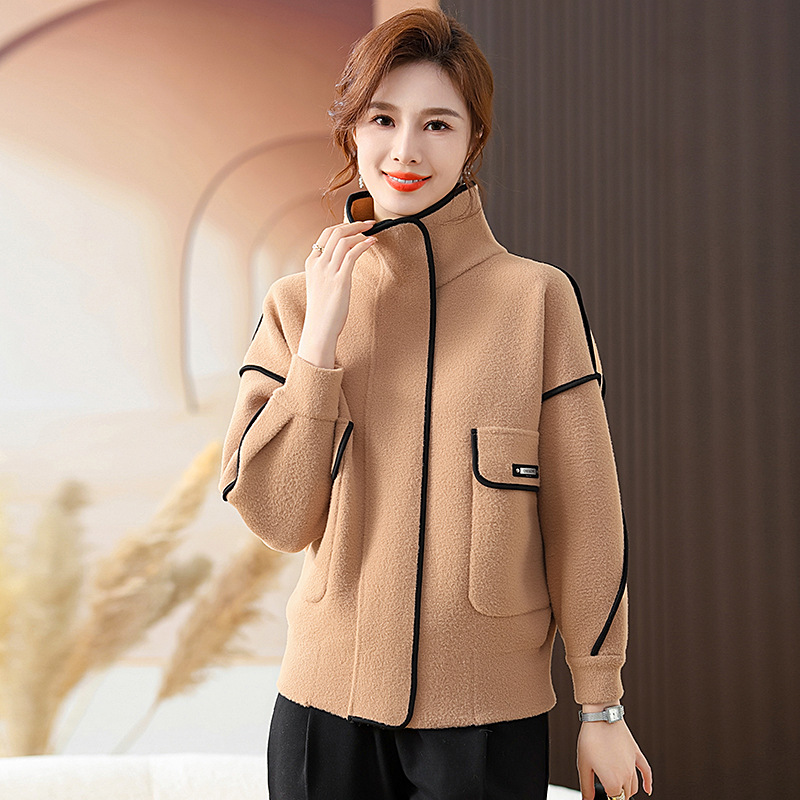 중년 여성용 봄 가을 모직 코트, 짧은 스타일 상의, 중장년 여성용 양면 모직 코트, 작은 키 여성을 위한 패셔너블하고 우아한 코트
