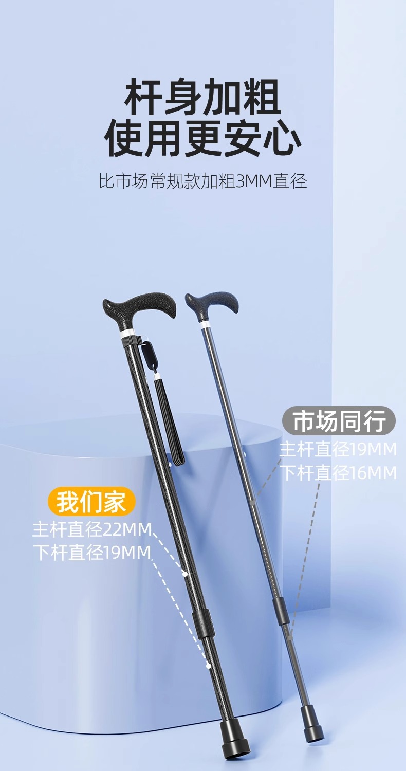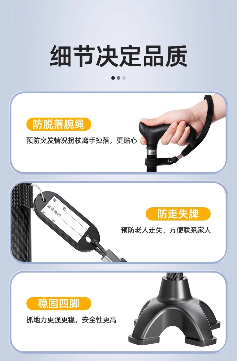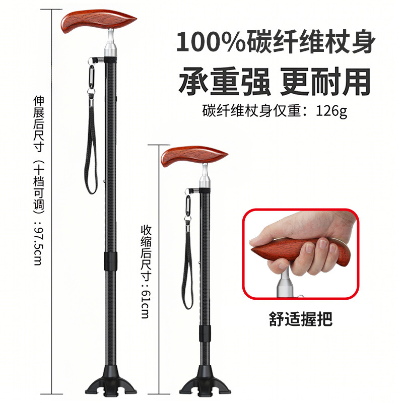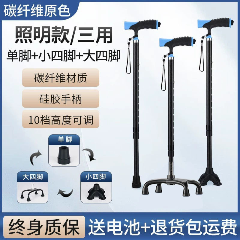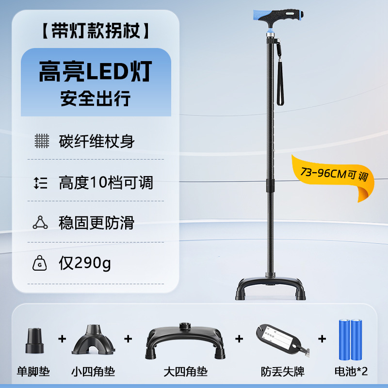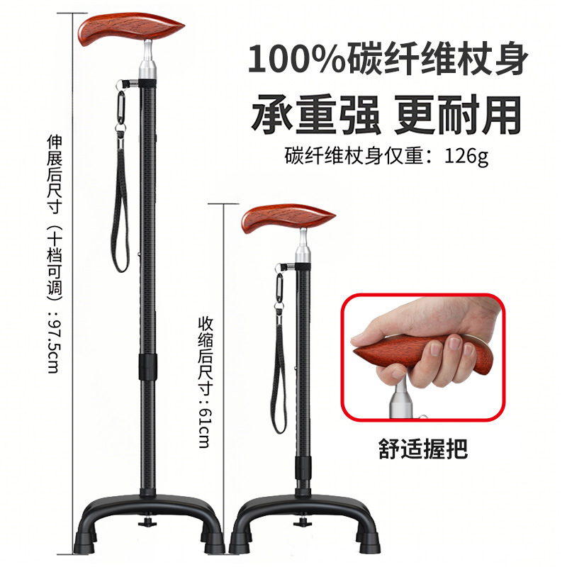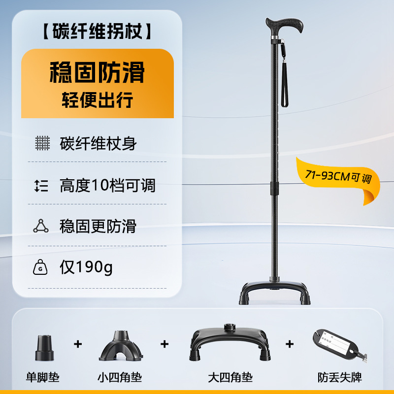 국경을 넘는 45CM 탄소섬유 미끄럼 방지 지팡이 220G 휴대가 간편한 4발 방지 낙상 노인용 조절 가능한 높이 지팡이스토어 가기