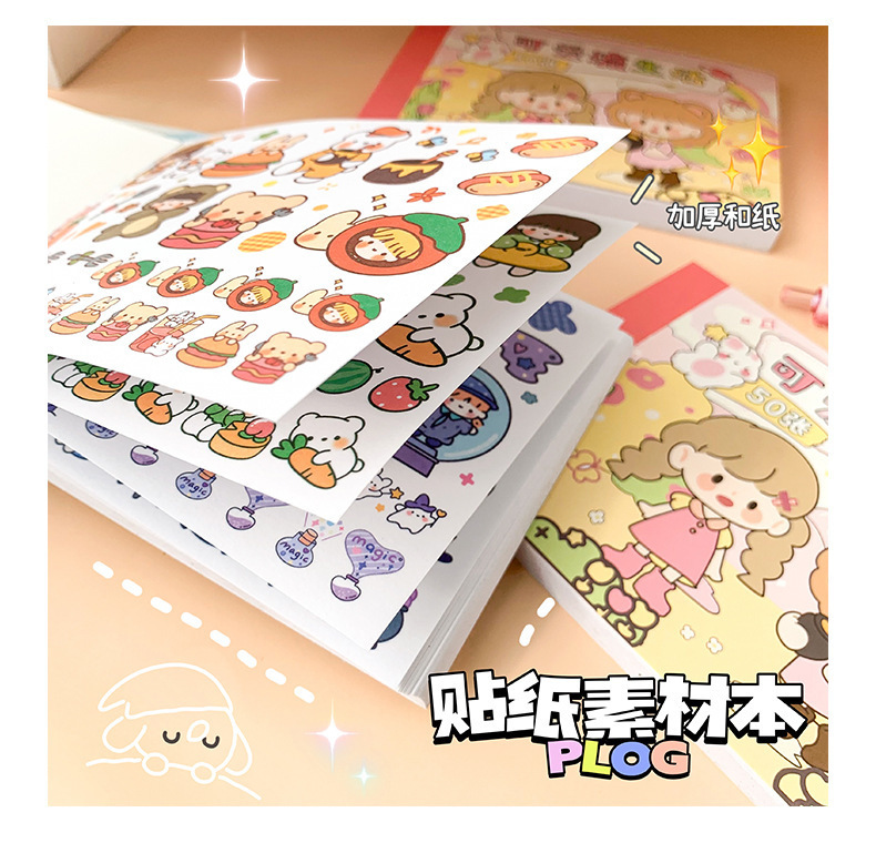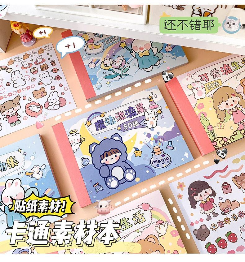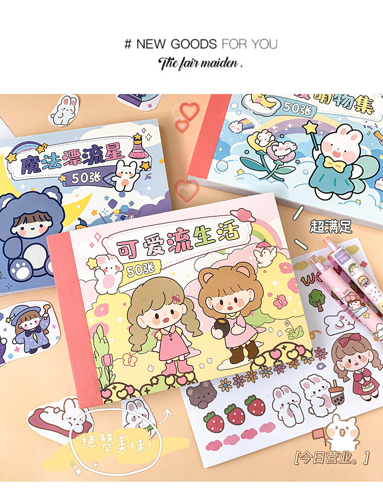 귀여운 소녀 심장 만화 소녀 손 계정 스티커 자료 책 초등학교 학생 스티커 손 계정 스티커 책 도매스토어 가기