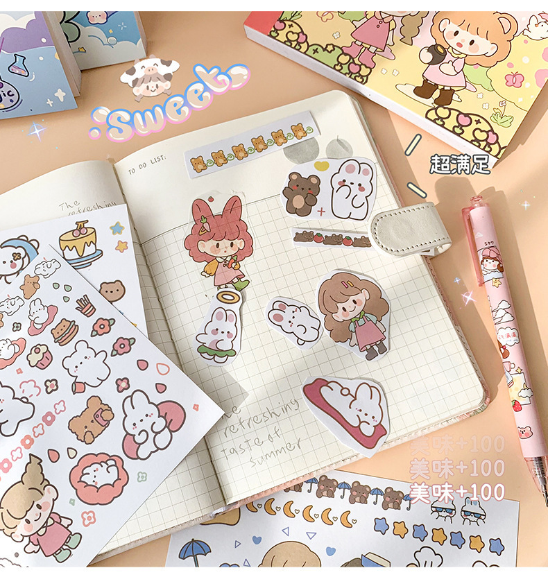 귀여운 소녀 심장 만화 소녀 손 계정 스티커 자료 책 초등학교 학생 스티커 손 계정 스티커 책 도매