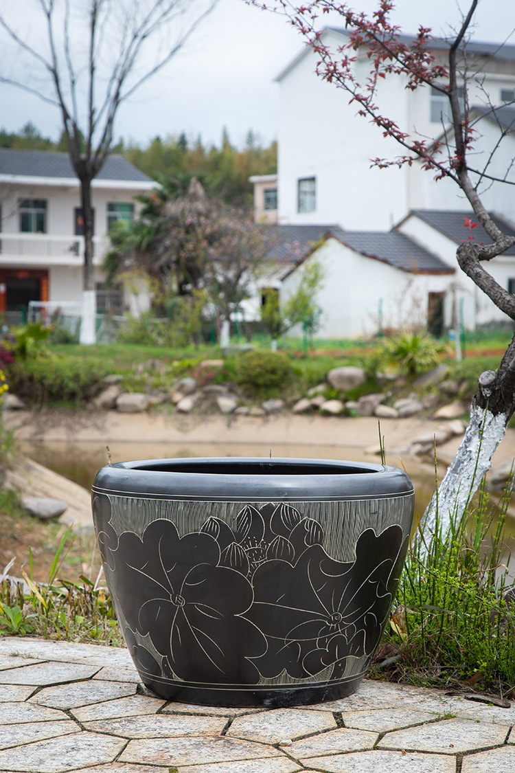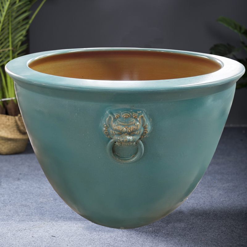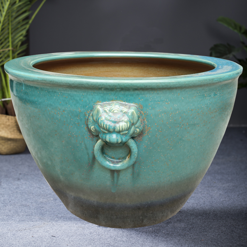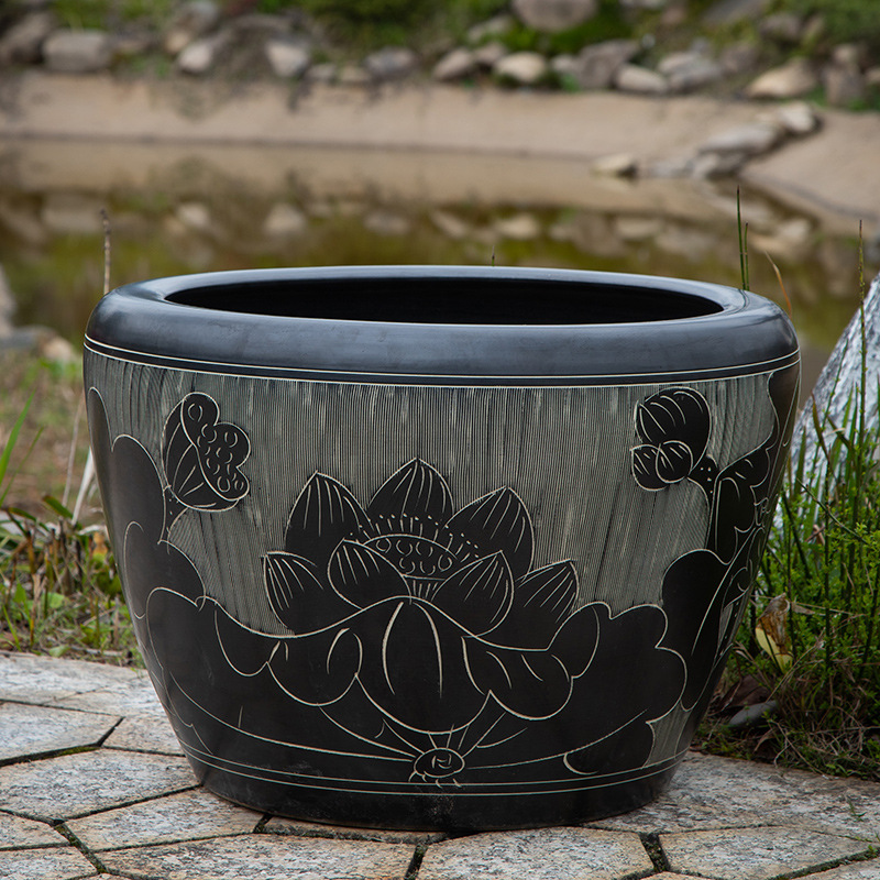 Jingdezhen 세라믹 탱크 1 m 물고기 탱크 골동품 초대형 물 탱크 연꽃 잠자는 연꽃 야외 정원 나무 심기 탱크