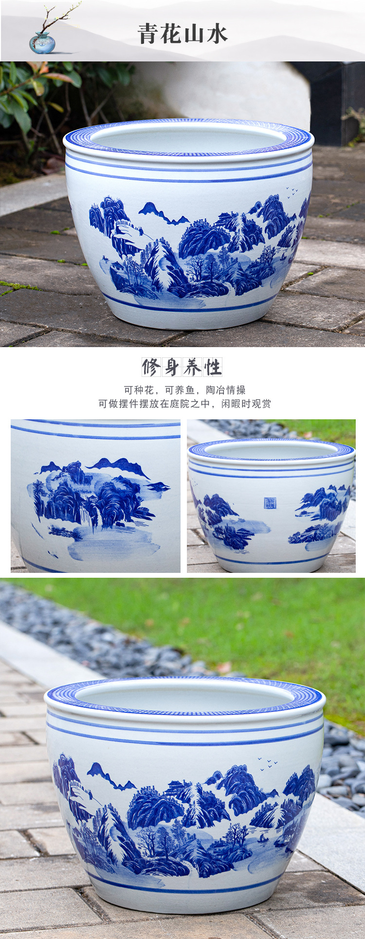 Jingdezhen 세라믹 탱크 1 m 물고기 탱크 골동품 초대형 물 탱크 연꽃 잠자는 연꽃 야외 정원 나무 심기 탱크스토어 가기