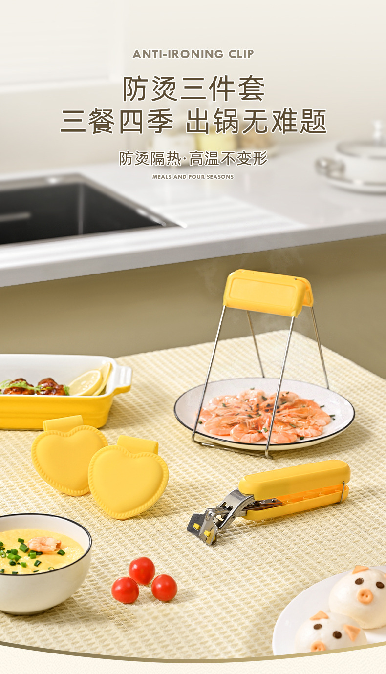 안티-scald 3 피스 가정용 주방 다기능 안티-scald 휴대용 장치 미끄럼 방지 찐 야채 클립 사랑 단열 핸드 클립