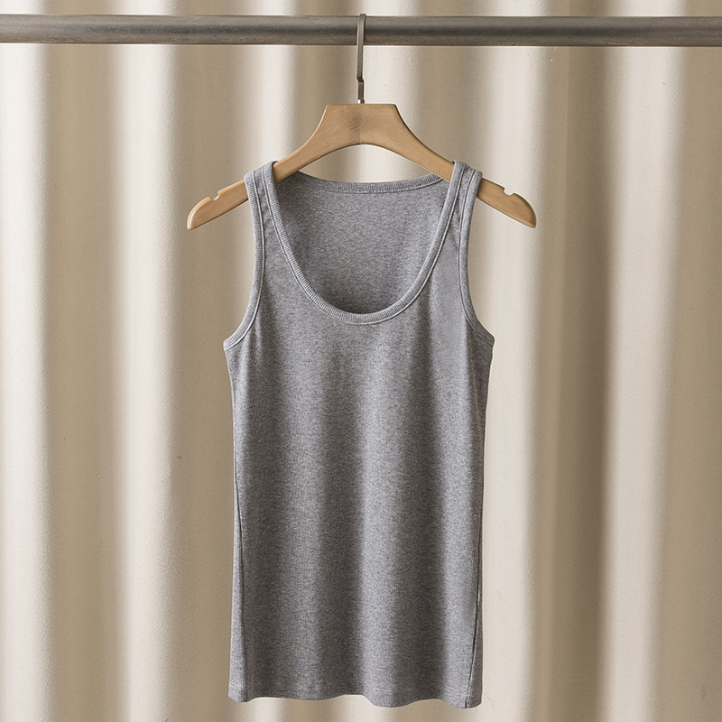 TOT24 여름 새로운 갈비뼈 탄성 유기농면 u-넥 조끼 간단한 실제 착용 한 사람 이상스토어 가기