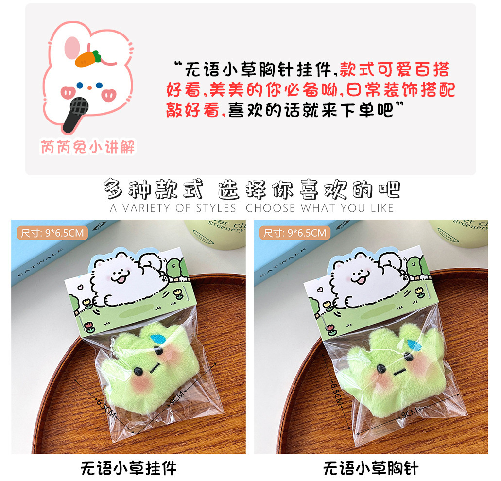 귀여운 봉제 말이없는 잔디 펜던트, 달콤한 스타일 소녀 선물 만화 브로치 모피 펜던트 도매
