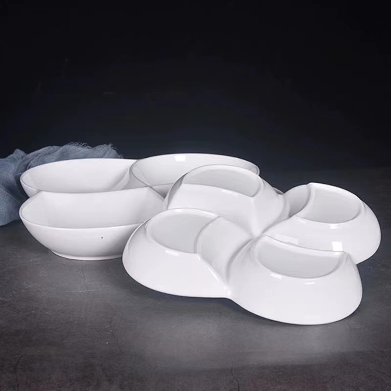 세라믹 화이트 5 과일 플레이트 창조적 인 소금물 플래터 호텔 홈 레스토랑 멀티 그리드 말린 과일 스낵 플레이트 그리드 플레이트