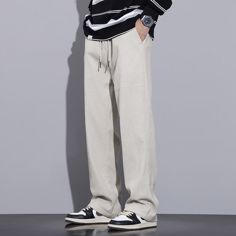 부티크 남자 유행 남자 바지 탄성 안티-주름 거리 트렌디 와이드 레그 바지 봄과 가을 새로운 올 매치 느슨한 캐주얼 바지 남자