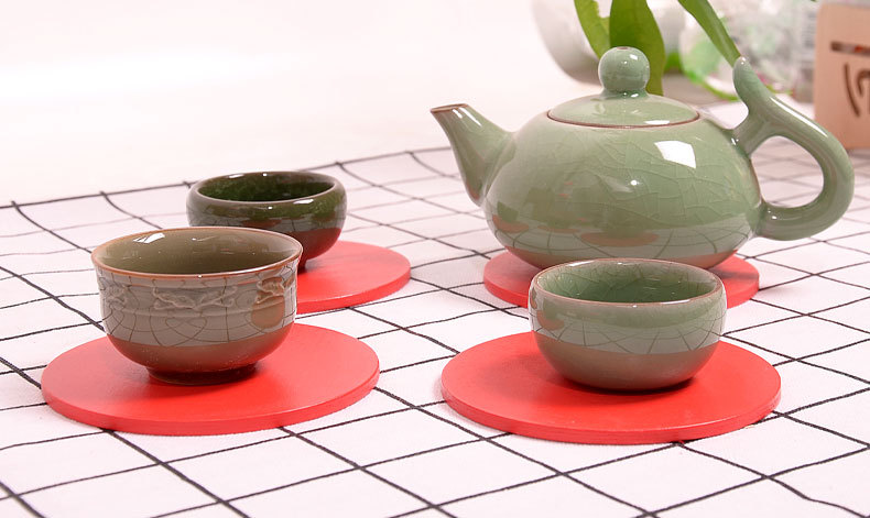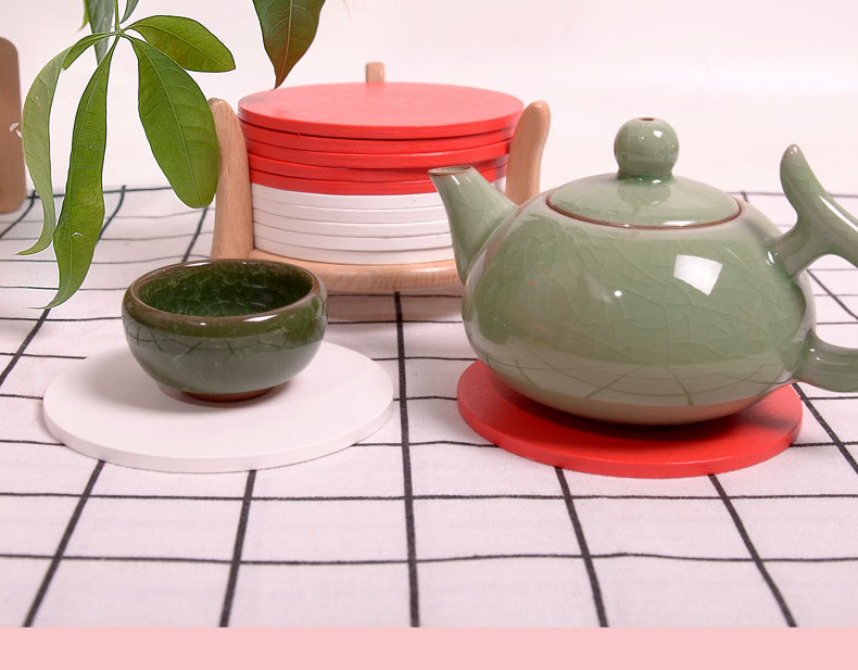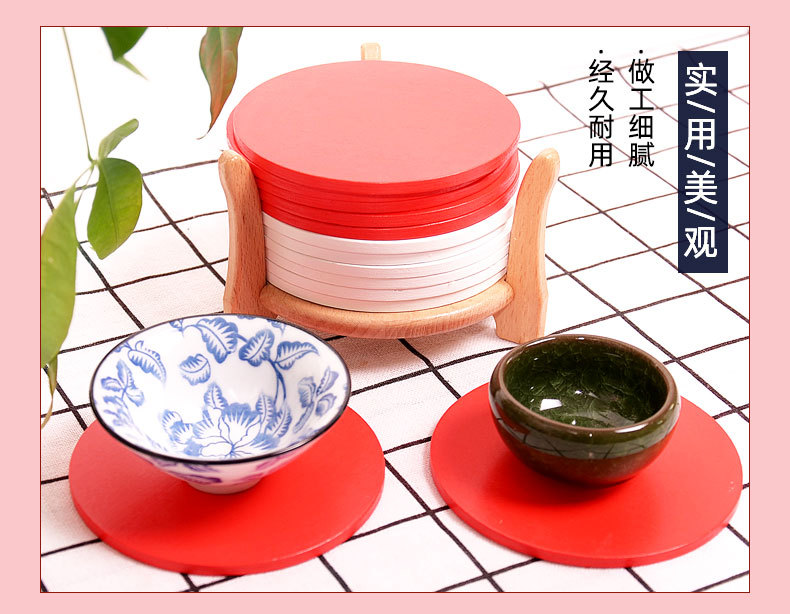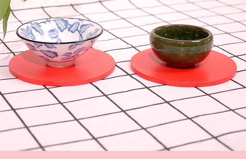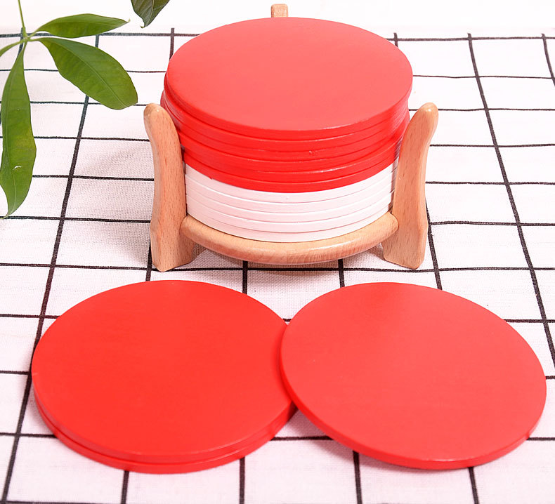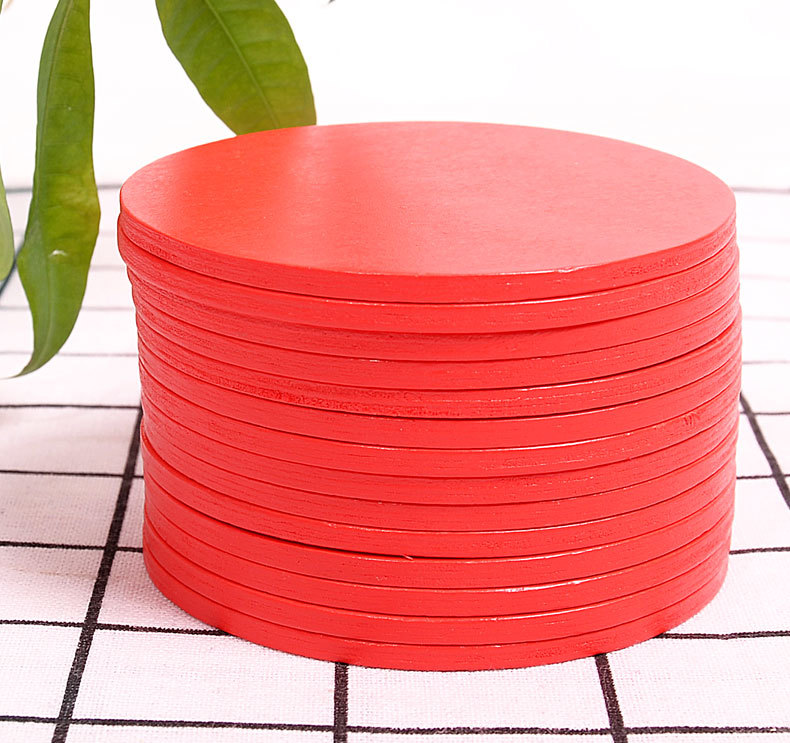 공장 재고 빨간색 흰색 나무 코스터 작은 배치 플러스 로고 플러스 패턴 나무 매트 단열 방지 scald 종이 코스터스토어 가기