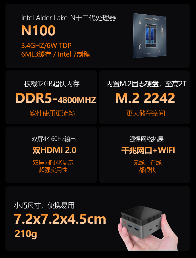 SIBOLAN 직접 판매 12 세대 N100 미니 호스트 휴대용 사무실 가정용 컴퓨터 호스트 도매 미니 pc