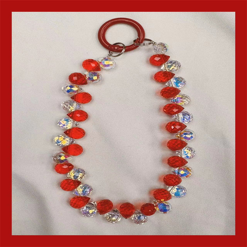 원래 새해 붉은 물방울 크리스탈 체인 휴대 전화 끈 짧은 휴대용 체인 수제 끈 펜던트 키 체인