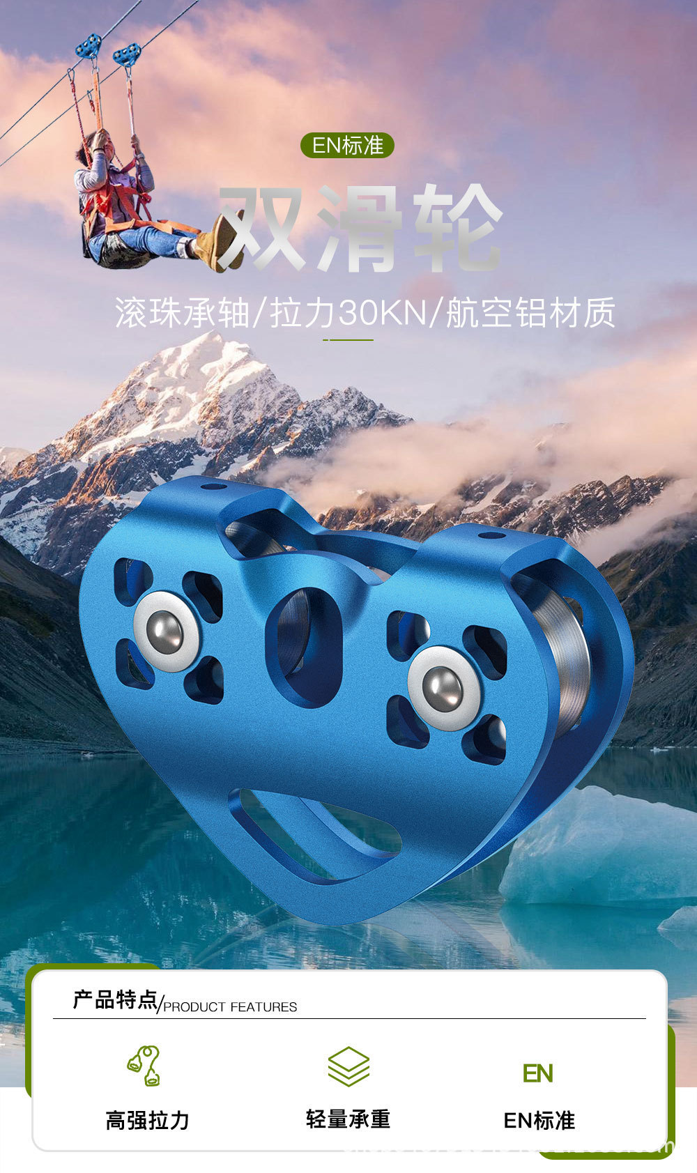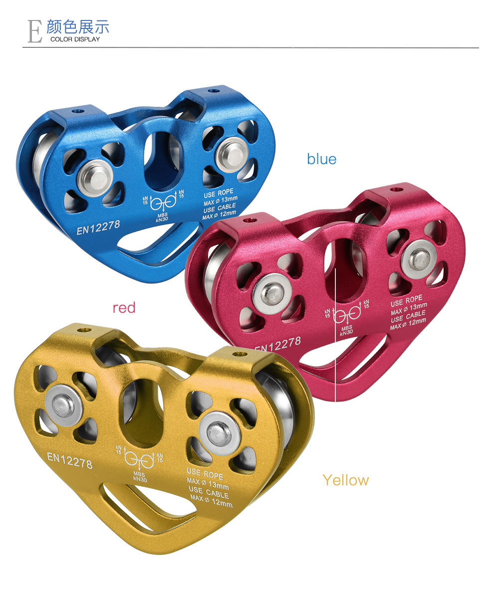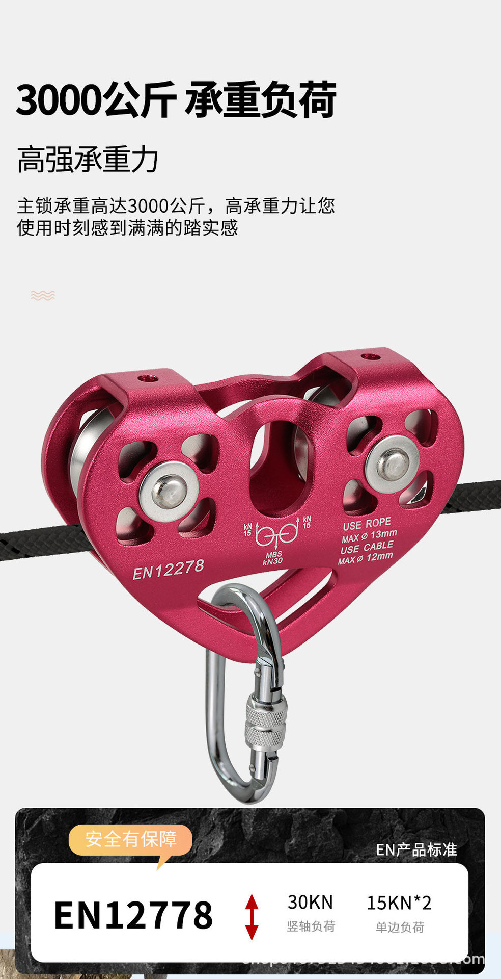 국경 간 30KN 야외 암벽 등반 사랑 이중 축 이중 도르래 높은 고도 케이블 빠른 등반 베어링 도르래