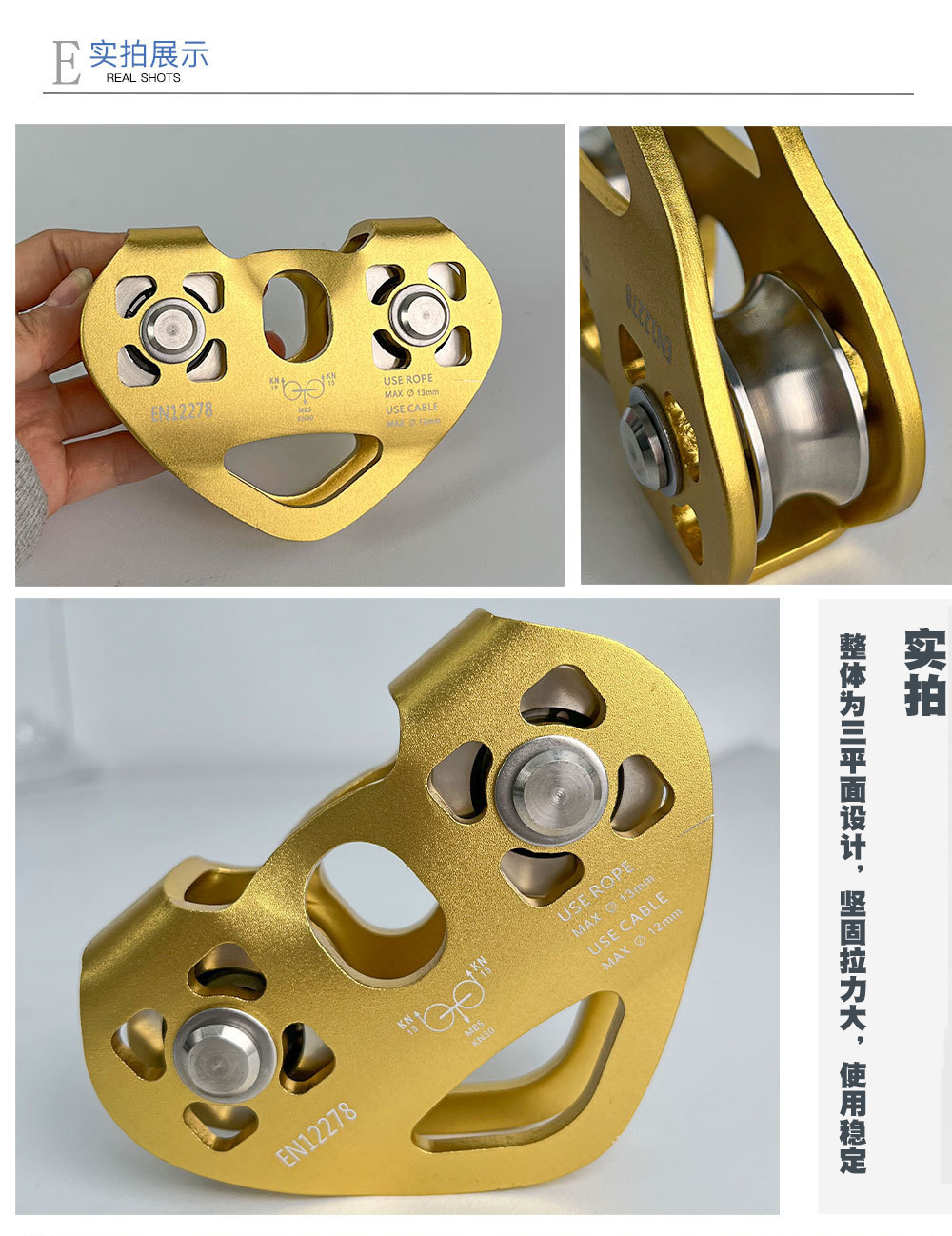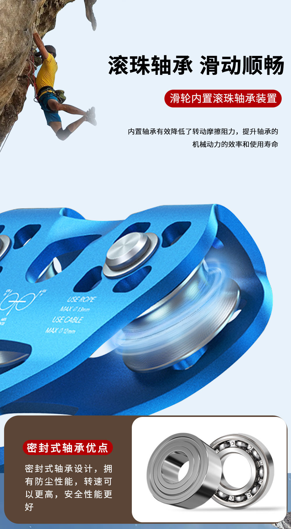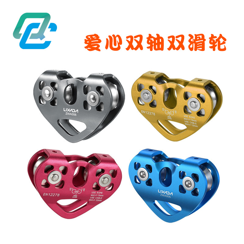 국경 간 30KN 야외 암벽 등반 사랑 이중 축 이중 도르래 높은 고도 케이블 빠른 등반 베어링 도르래