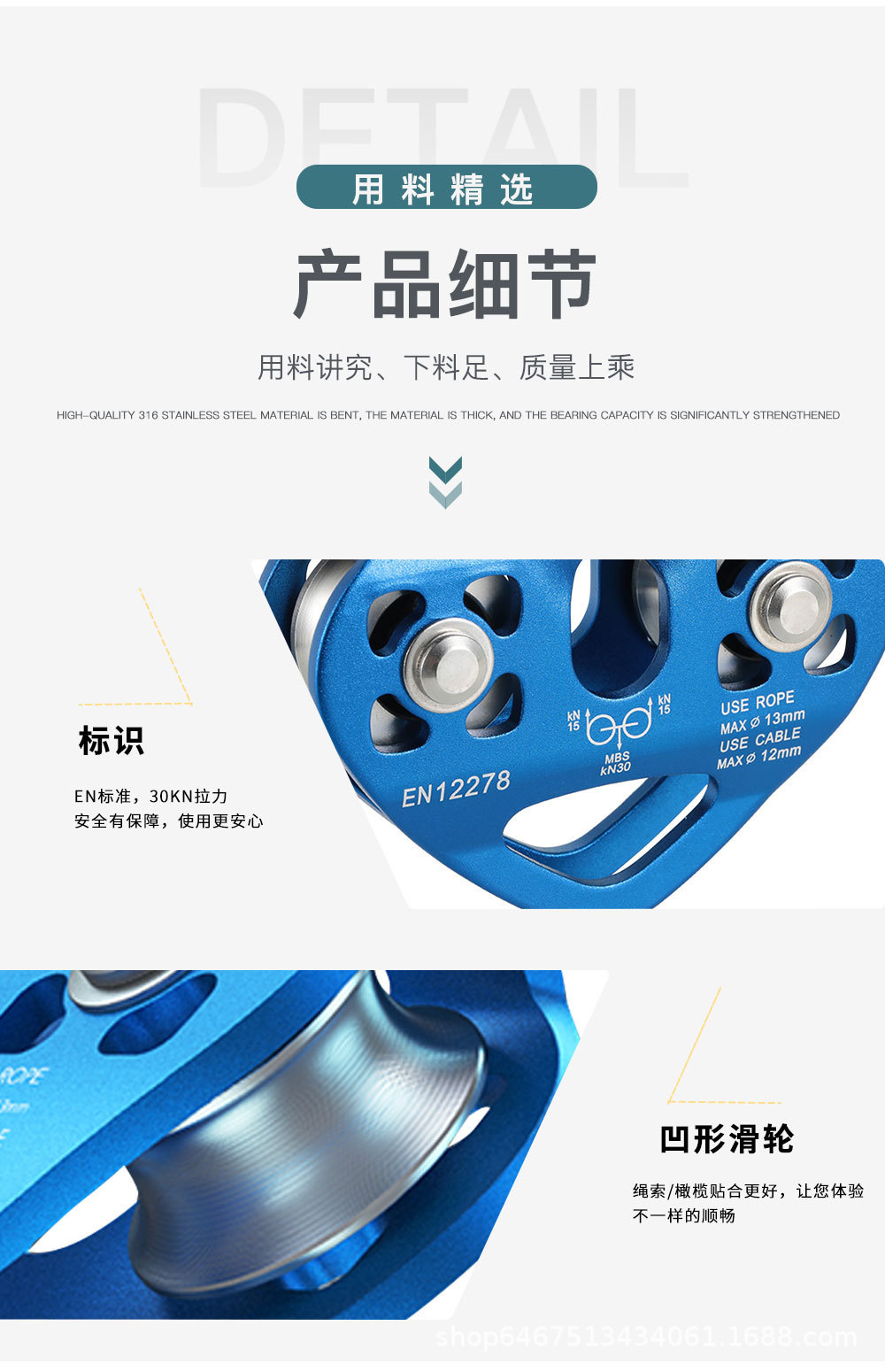 국경 간 30KN 야외 암벽 등반 사랑 이중 축 이중 도르래 높은 고도 케이블 빠른 등반 베어링 도르래스토어 가기