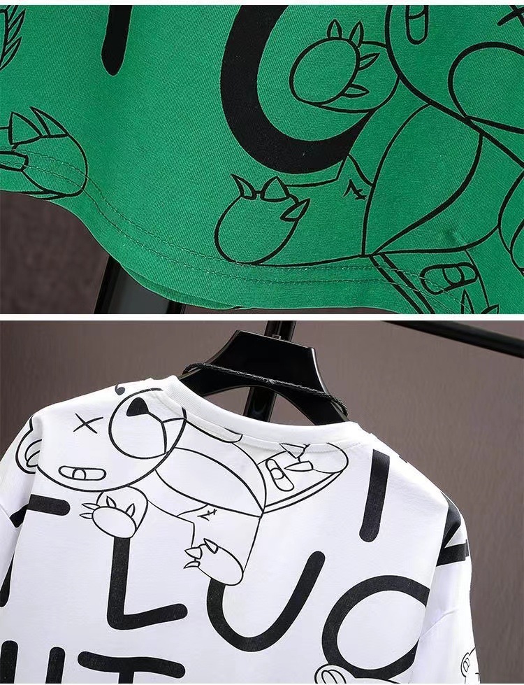 새로운 여름 반팔 티셔츠 세트 남성 트렌디 브랜드 남성 의류 10 대 학생 빅 보이 핸섬 스포츠 세트 트렌디스토어 가기