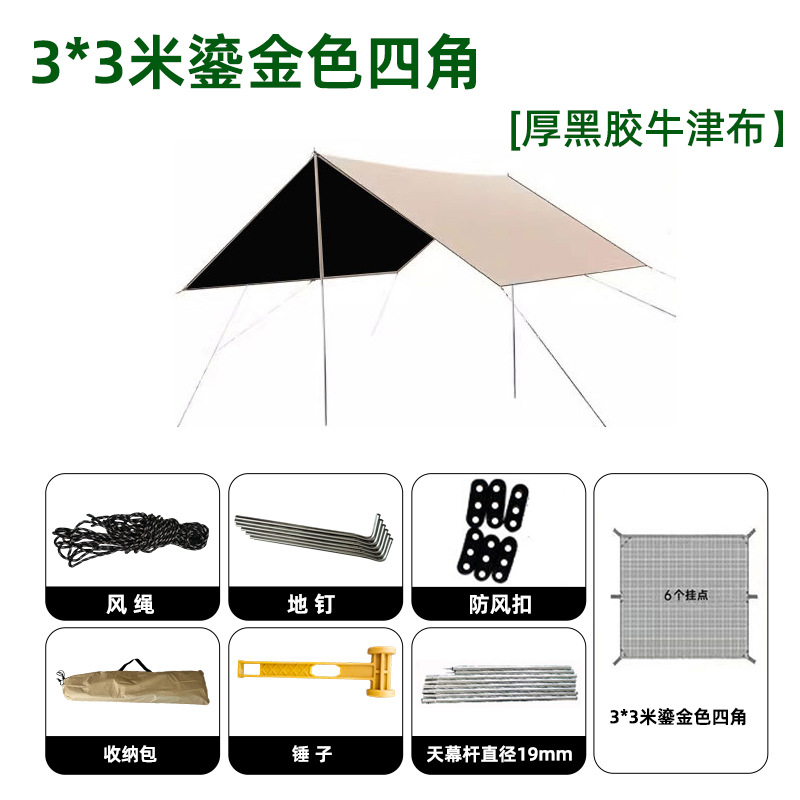 • 3*3 m 금 도금 네 모서리 [두꺼운 검은 고무 옥스포드 천] 2.0 두꺼운 막대