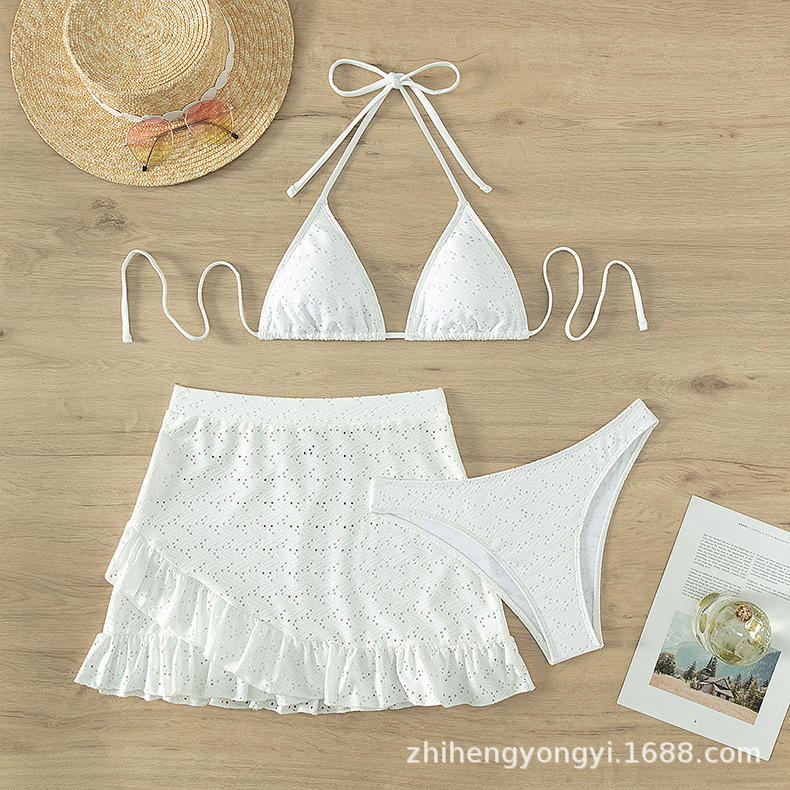 2024 새로운 유럽과 미국의 비키니 섹시한 수영복 여성 3 피스 화이트 백리스 비키니 크로스 국경 대외 무역 수영복스토어 가기