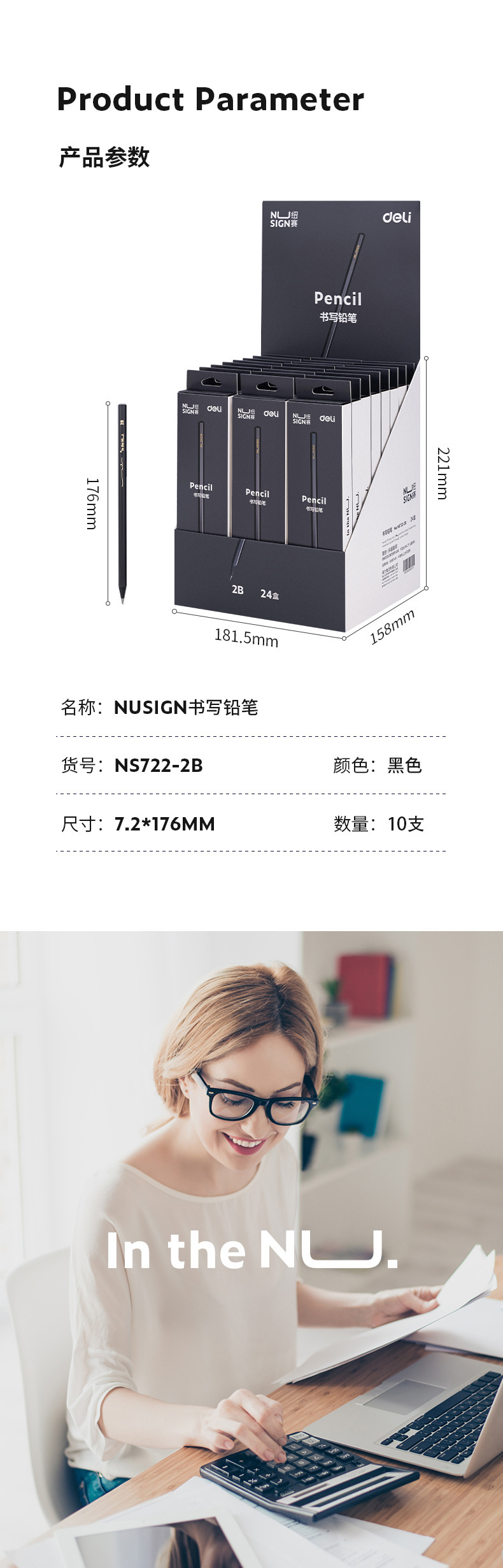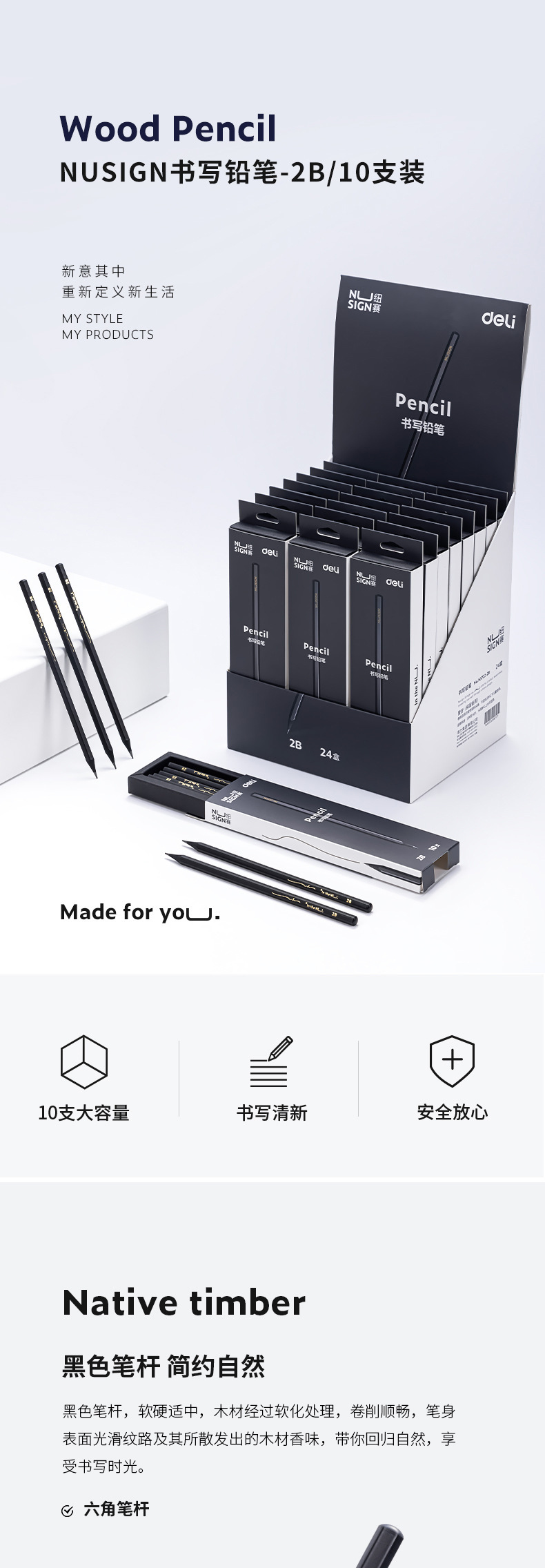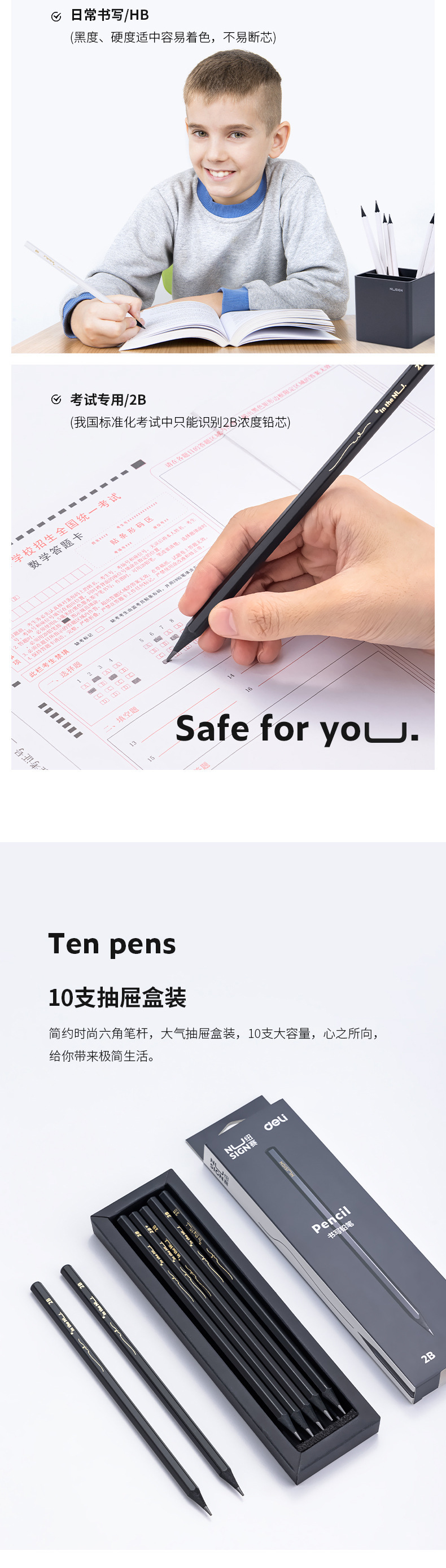 Delinius NS722 흑연 HB/2b 연필 초등학교 학생 육각형 장대 시험 예술 학생 스케치 10 상자스토어 가기