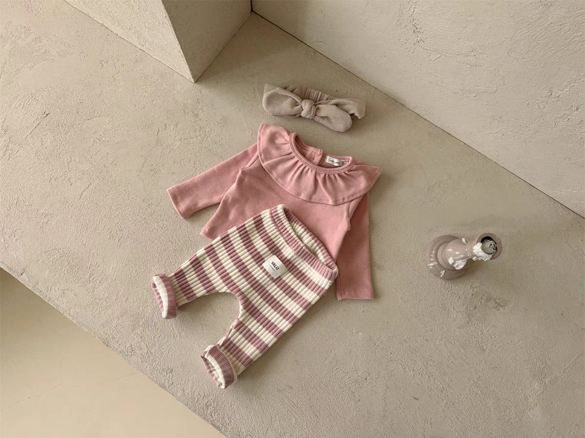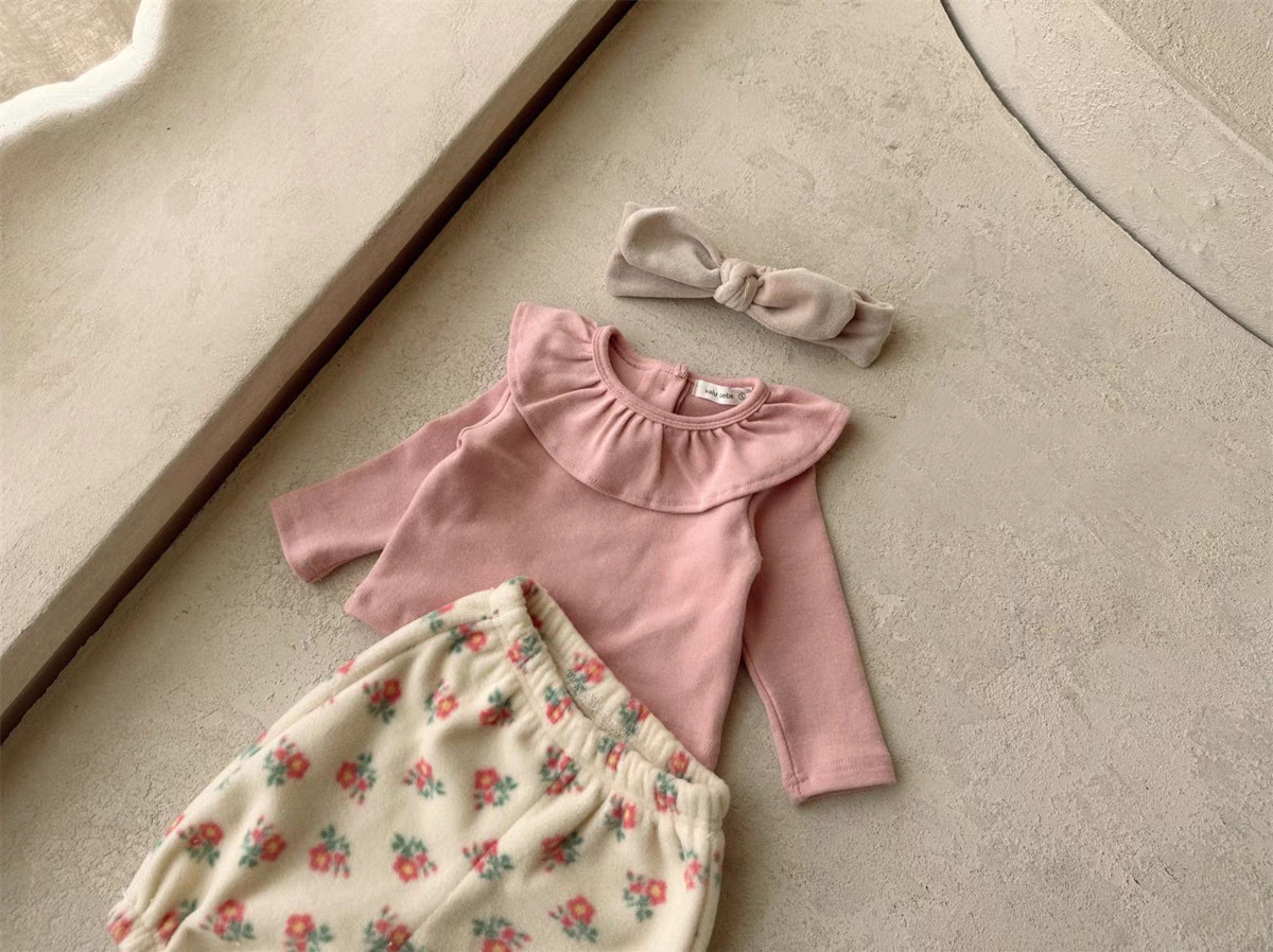 한국식, 봄과 가을 긴팔 인형 칼라 티셔츠 유아 아기 단색 트렌디 한 간단한면 바닥 셔츠