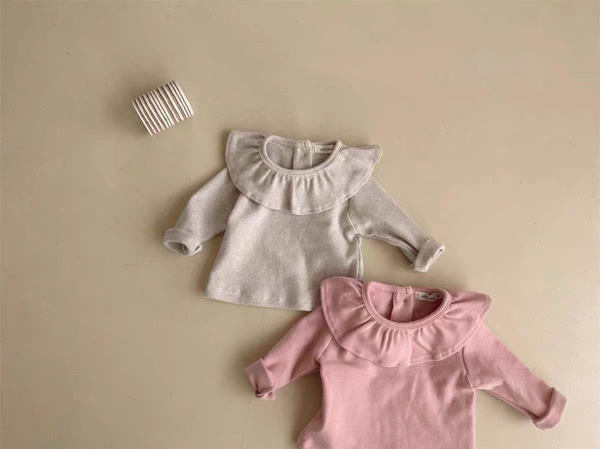 한국식, 봄과 가을 긴팔 인형 칼라 티셔츠 유아 아기 단색 트렌디 한 간단한면 바닥 셔츠스토어 가기