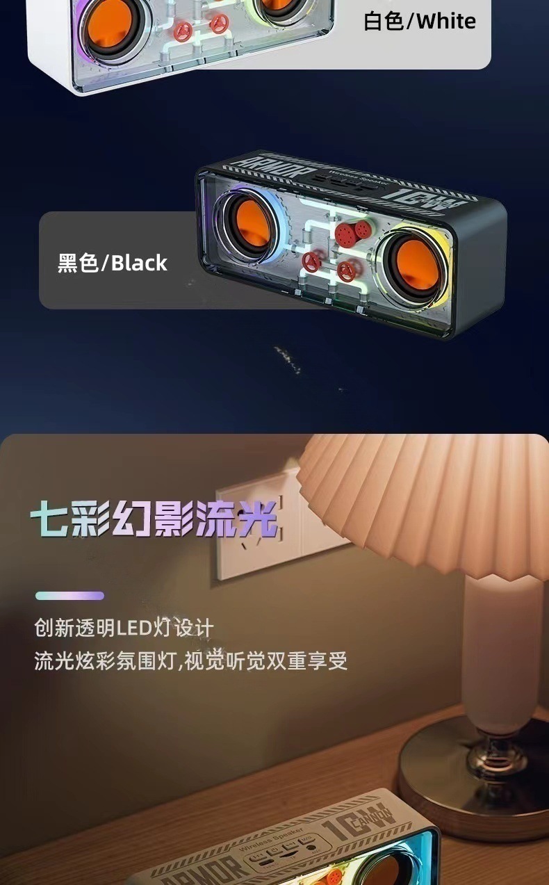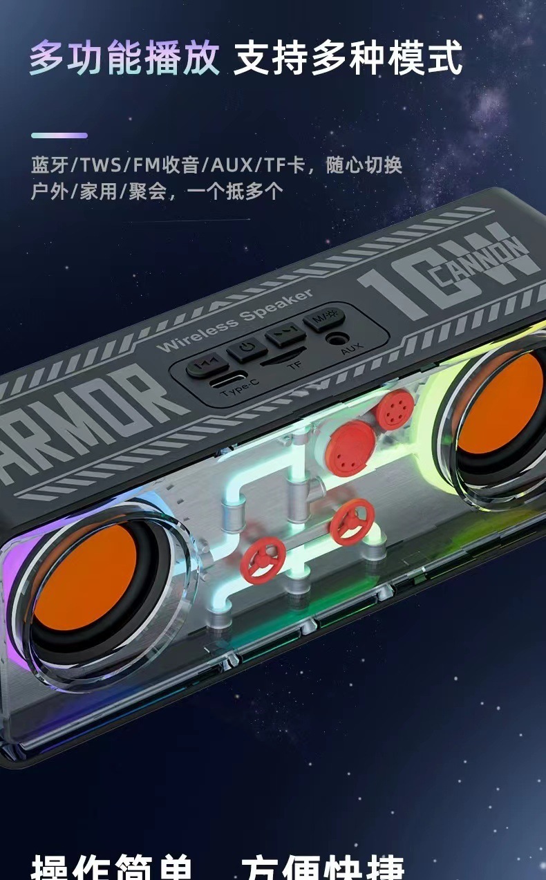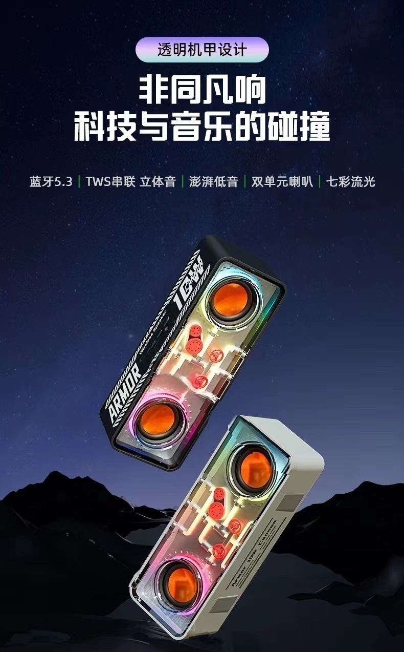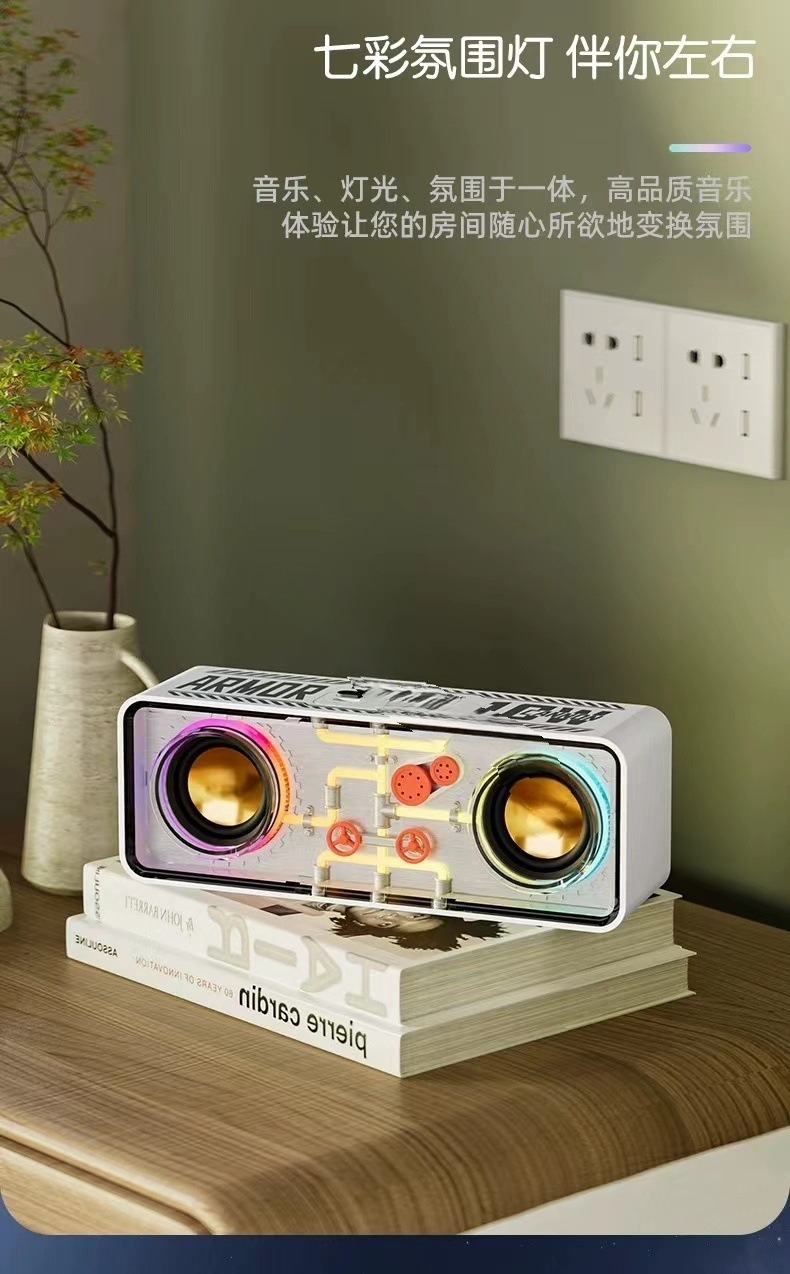 듀얼 스피커 투명 메카 무선 블루투스 사이버펑크 스타일 화려한 조명 소형 강력 베이스 진동판 스피커 A39스토어 가기