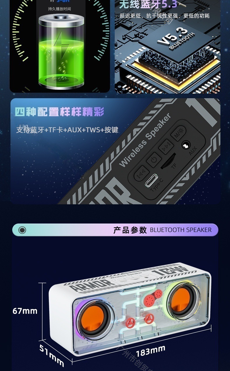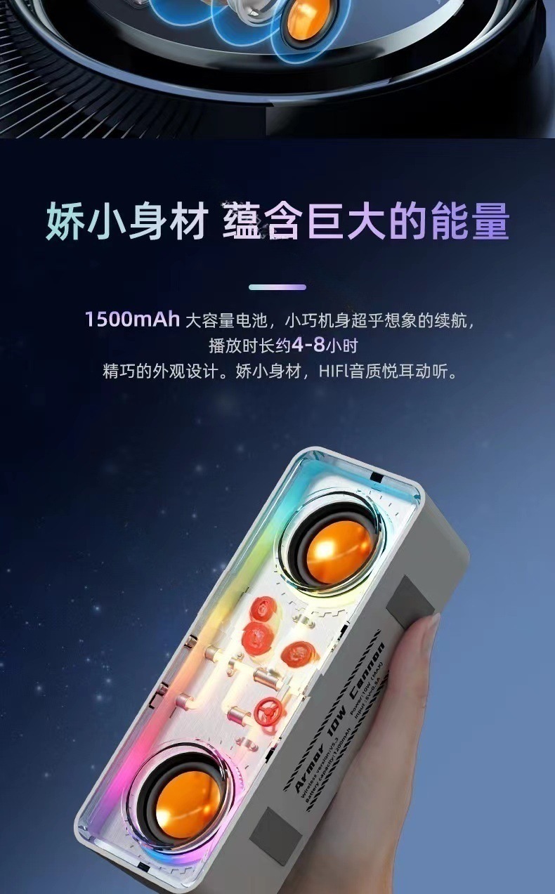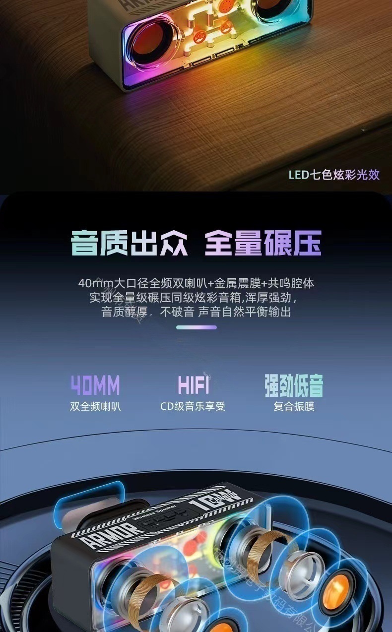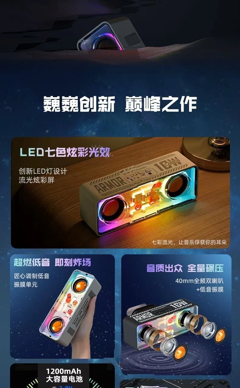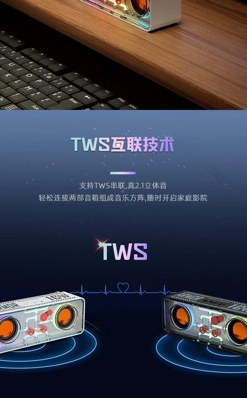 듀얼 스피커 투명 메카 무선 블루투스 사이버펑크 스타일 화려한 조명 소형 강력 베이스 진동판 스피커 A39스토어 가기