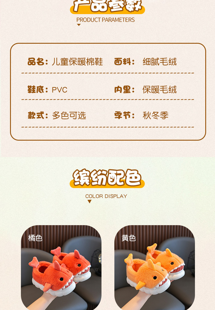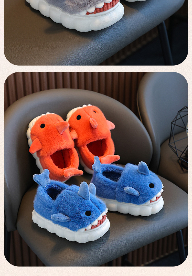 어린이용 겨울 방수 실내용 미끄럼 방지 귀여운 상어 캐릭터 아기 만화 캐릭터 중대형 어린이용 면 슬리퍼