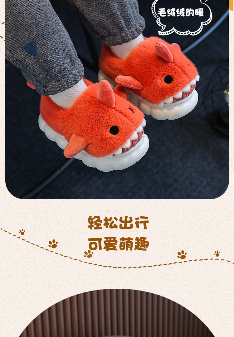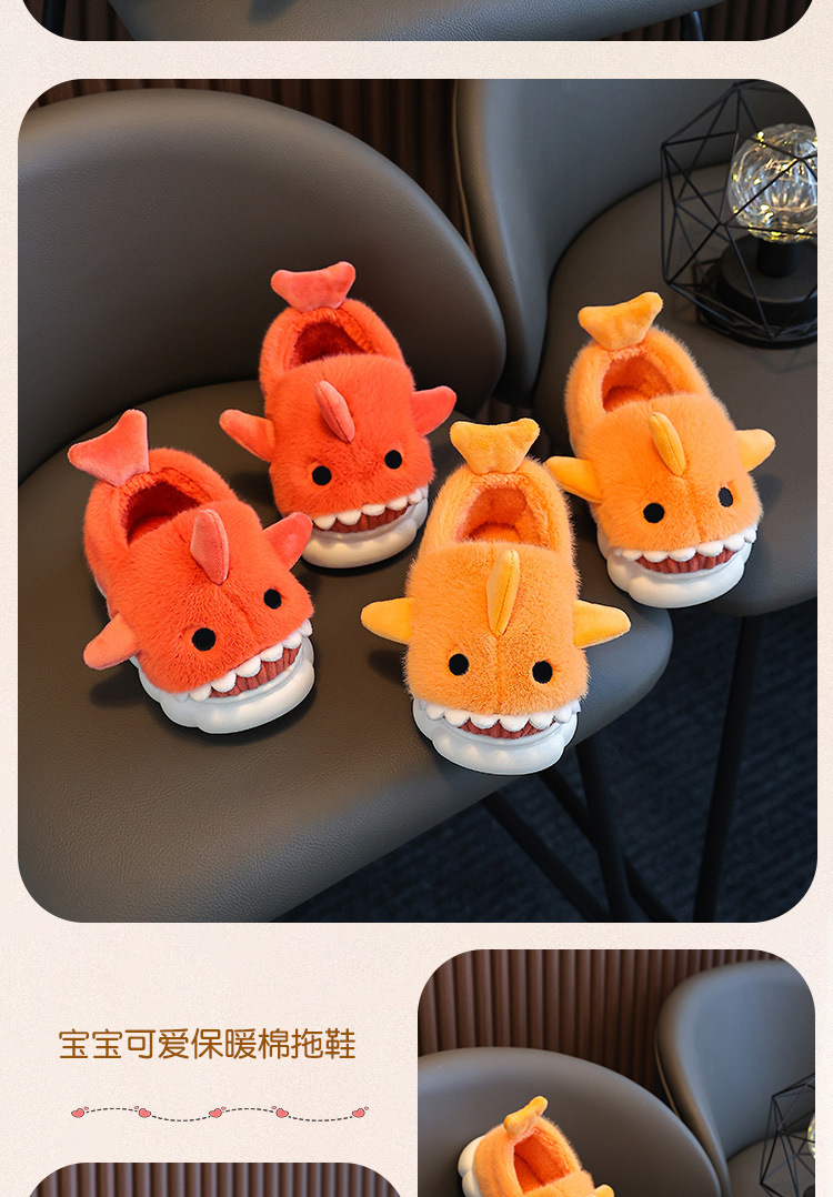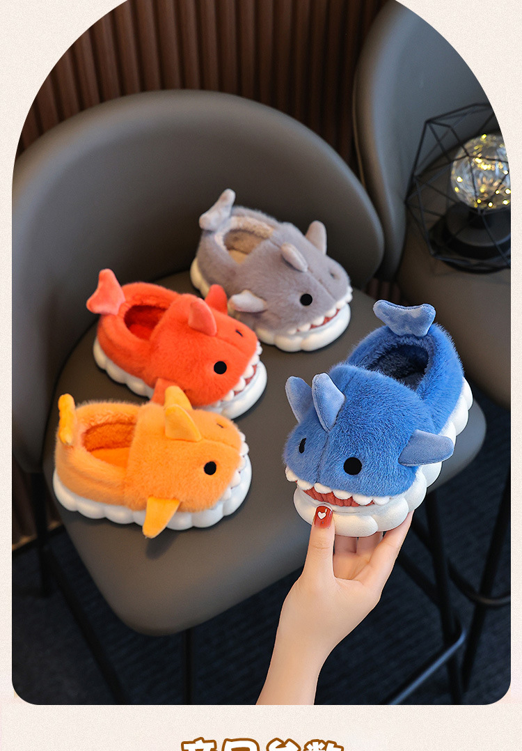 어린이용 겨울 방수 실내용 미끄럼 방지 귀여운 상어 캐릭터 아기 만화 캐릭터 중대형 어린이용 면 슬리퍼스토어 가기