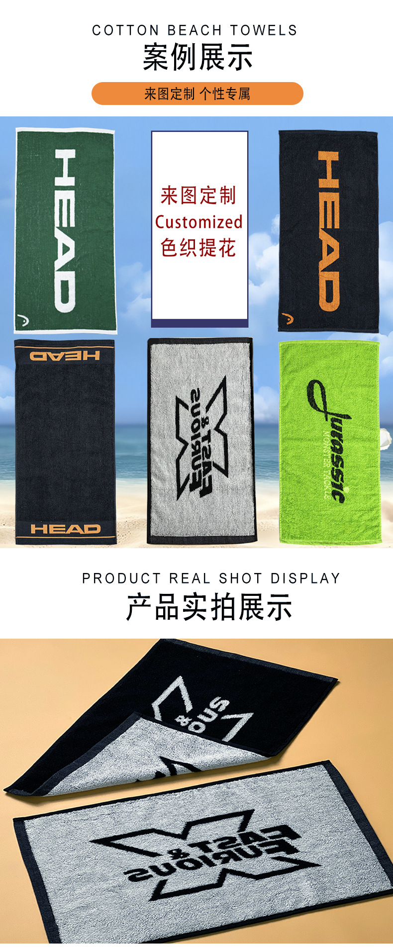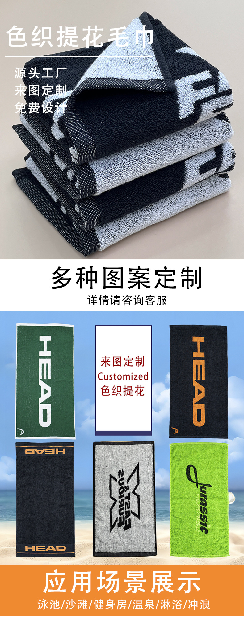 국경 간 맞춤형 원사 염색 수건 순수한면 두꺼운 자카드 수영 농구 달리기 땀 흡수성 남녀 피트니스 스포츠 타월스토어 가기