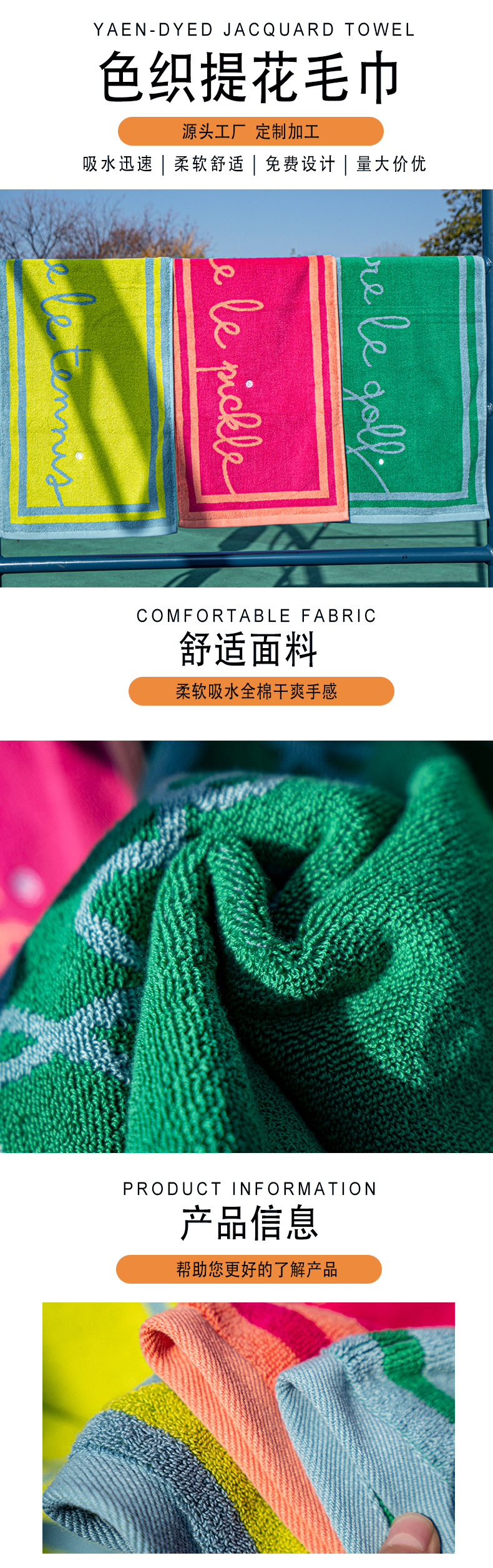 국경 간 맞춤형 원사 염색 수건 순수한면 두꺼운 자카드 수영 농구 달리기 땀 흡수성 남녀 피트니스 스포츠 타월