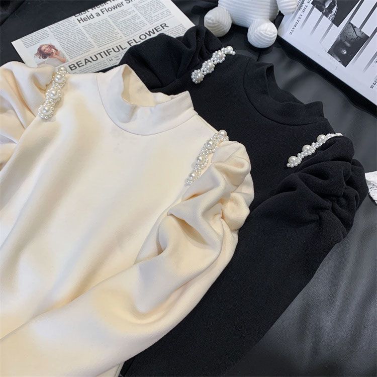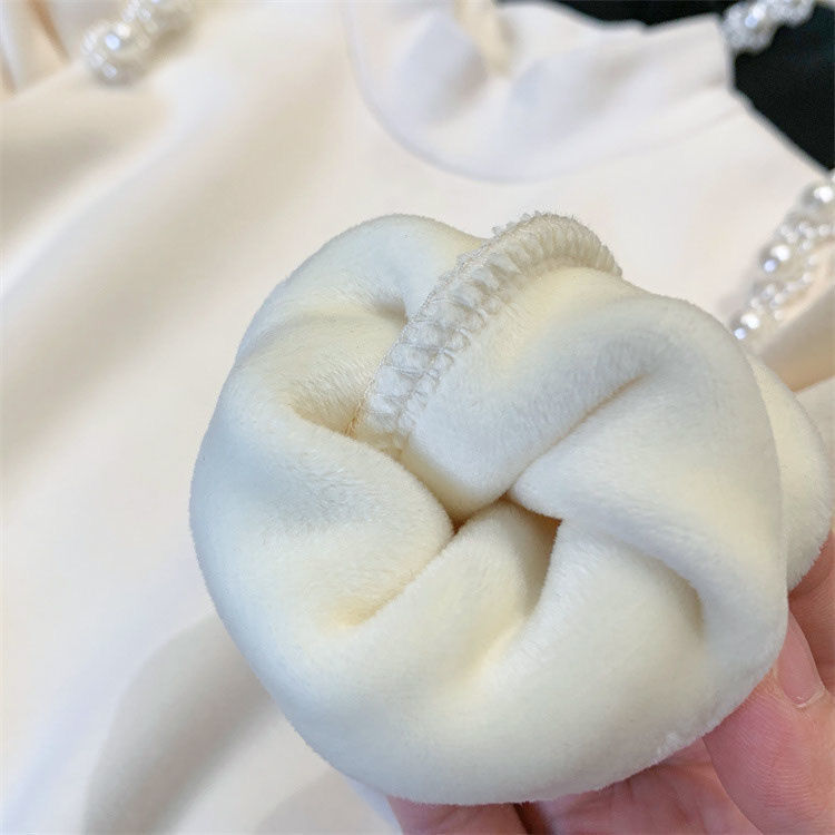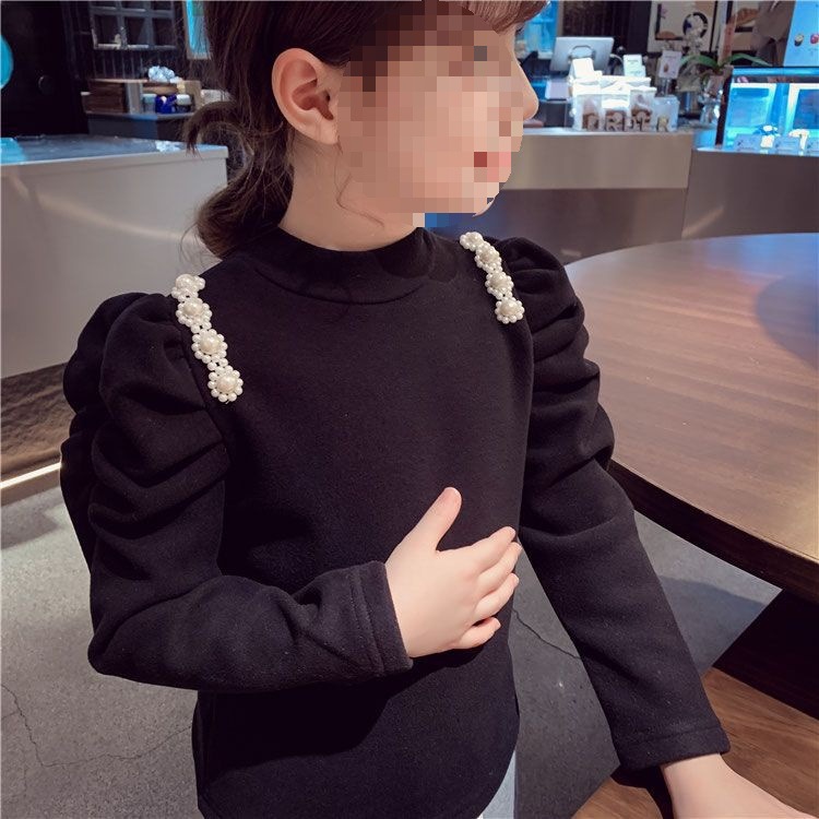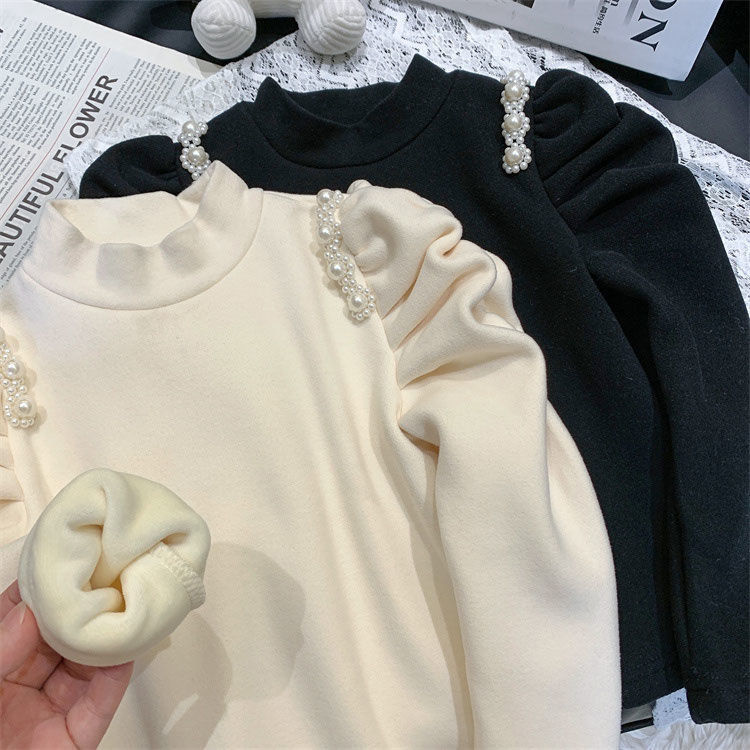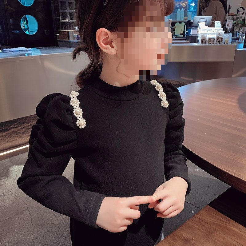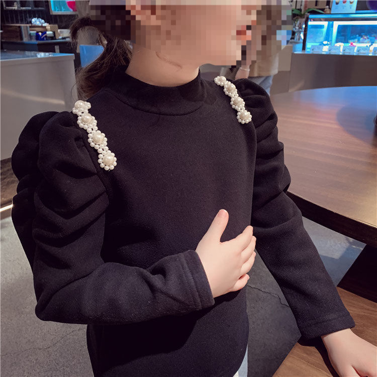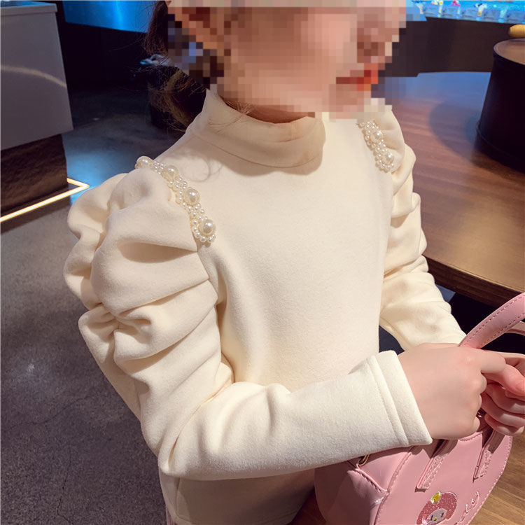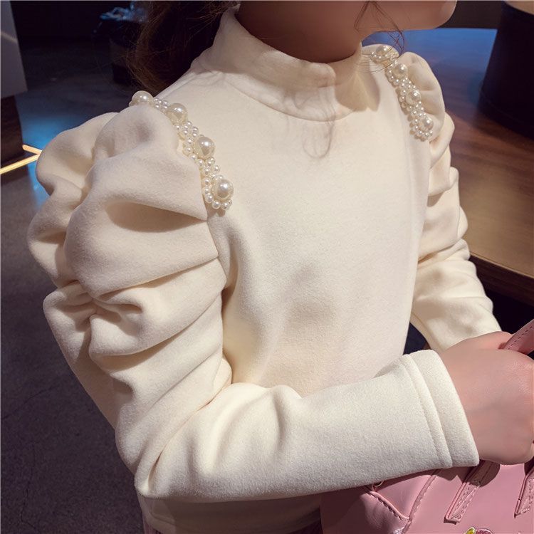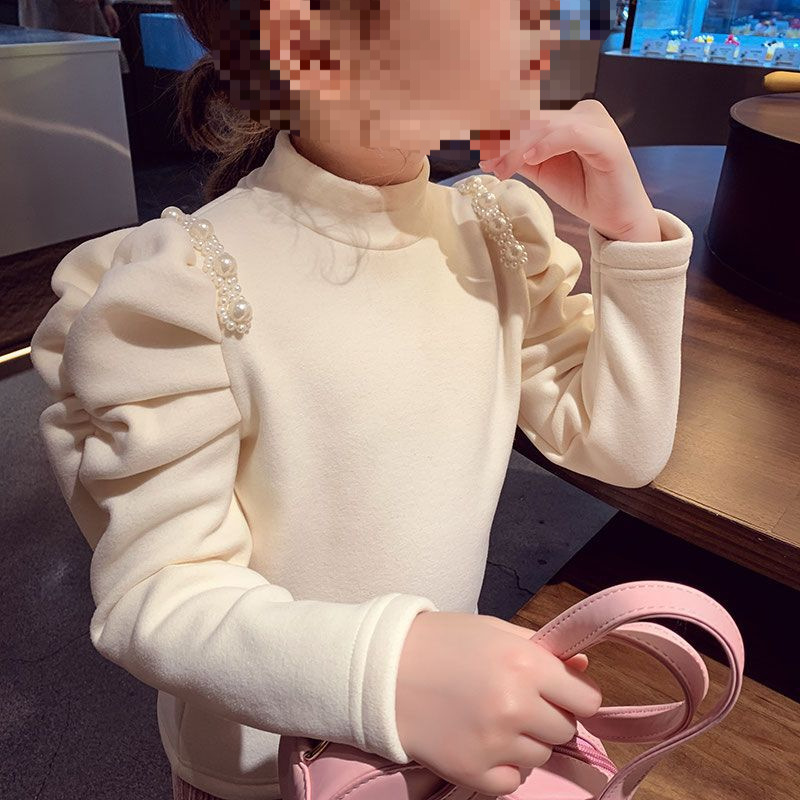 여자 겨울 두꺼운 양면 진주 퍼프 소매 바닥 셔츠 아기 소녀 서양식 따뜻한 탑 0015A009스토어 가기