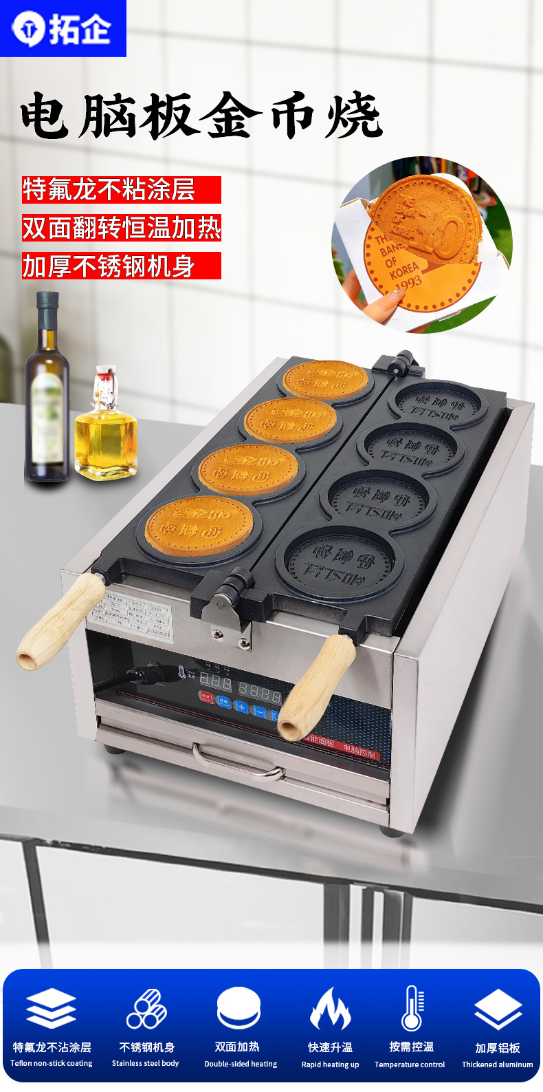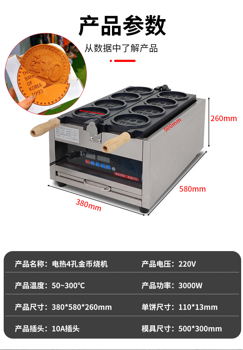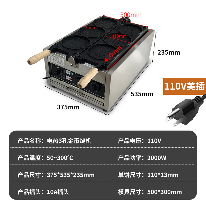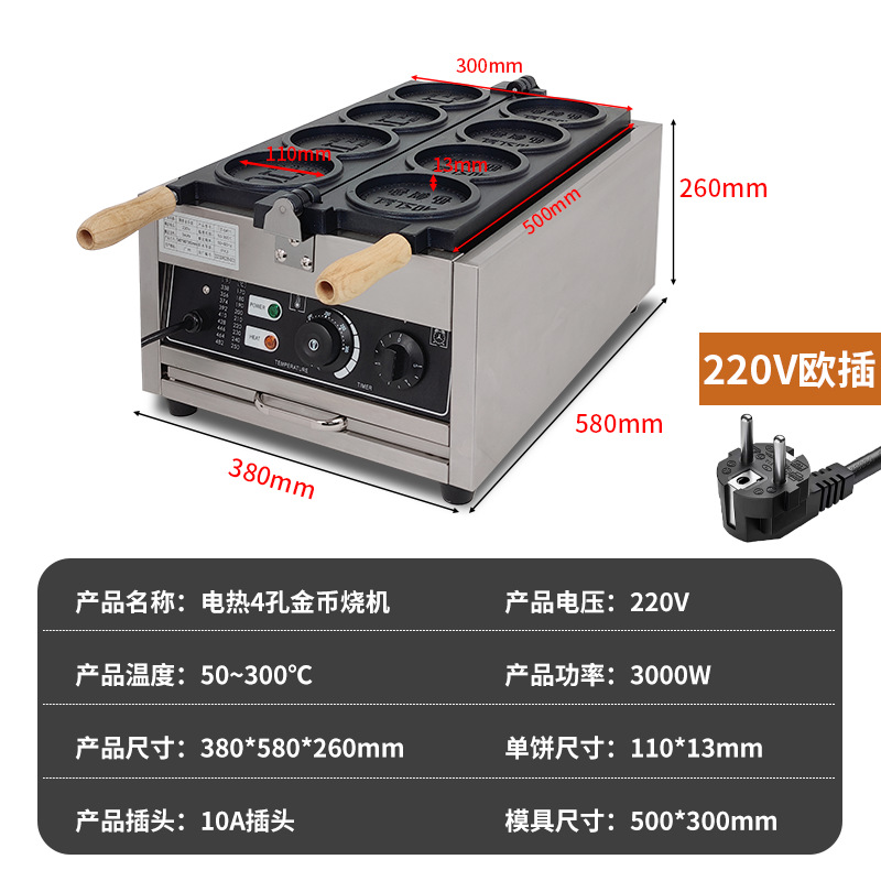 상업용 110V 전기 금화 빵 기계 치즈 브러시 금화 계란 와플 금형 국경 간 금화 와플 기계