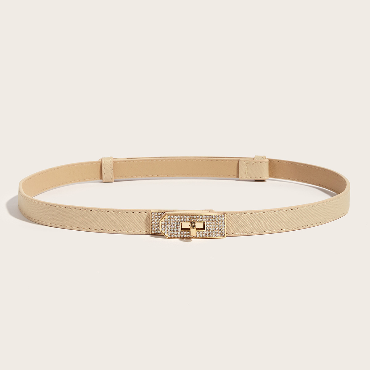 • 라인스톤 버클(골드 버클) 크로스 패턴 잠금 버클 조절 가능한 스트랩(살구색)