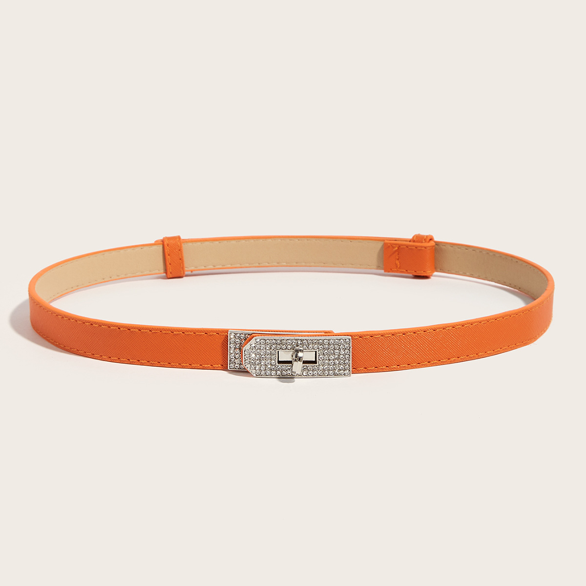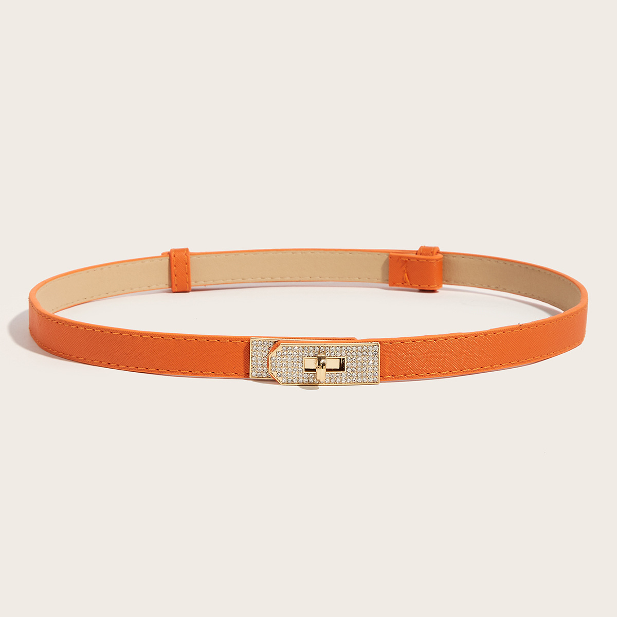 • 라인스톤 버클(골드 버클) 크로스 패턴 잠금 버클 조절 가능한 스트랩(오렌지)