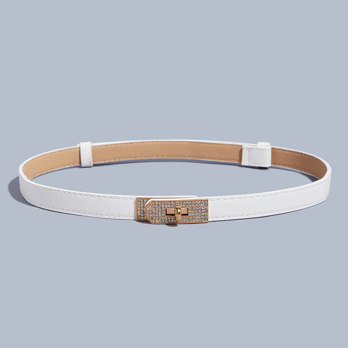 • 라인스톤 버클(골드 버클) 크로스 패턴 잠금 버클 조절 가능한 스트랩(화이트)
