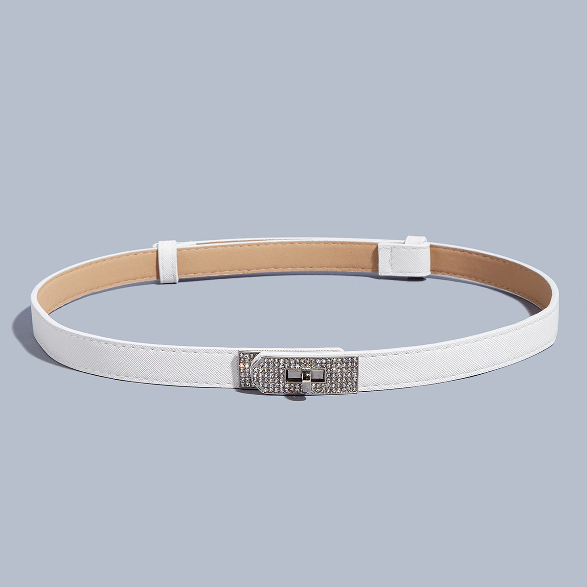 • 라인스톤 버클(실버 버클) 크로스 패턴 잠금 버클 조절 가능한 스트랩(화이트)
