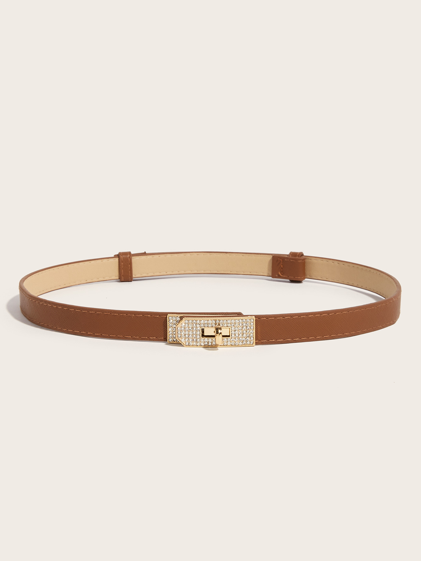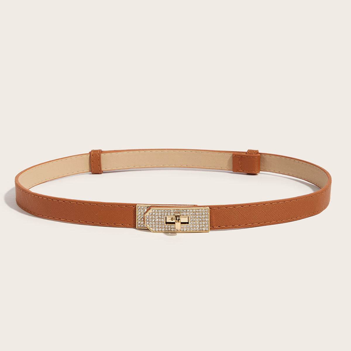 • 라인스톤 버클(골드 버클) 크로스 패턴 잠금 버클 조절 가능한 스트랩(브라운)