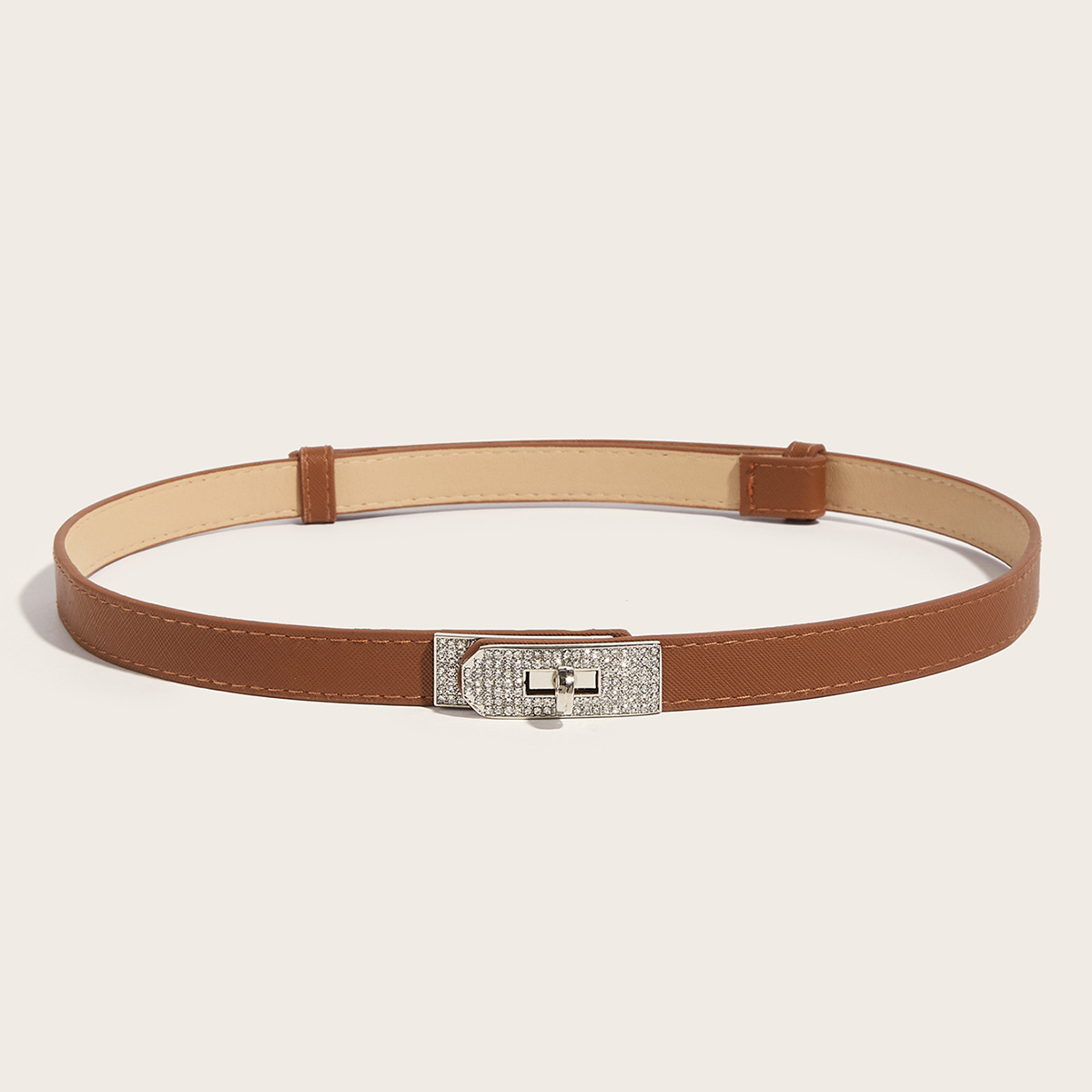 • 라인스톤 버클(실버 버클) 크로스 패턴 잠금 버클 조절 가능한 스트랩(브라운)