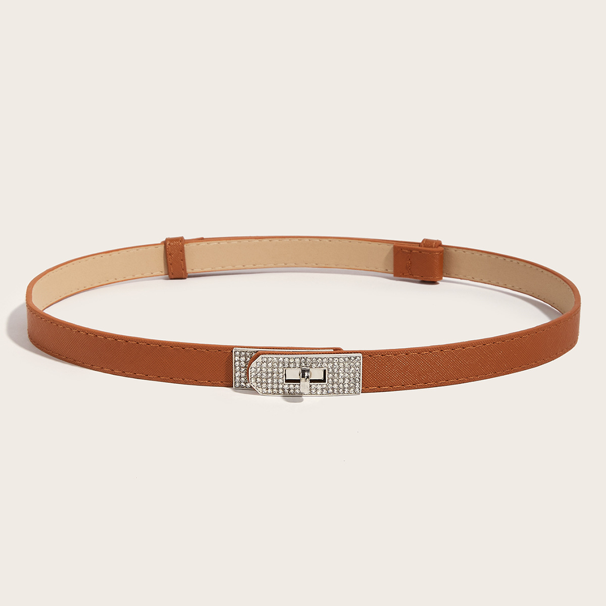• 라인스톤 버클(실버 버클) 크로스 패턴 잠금 버클 조절 가능한 스트랩(살구색)