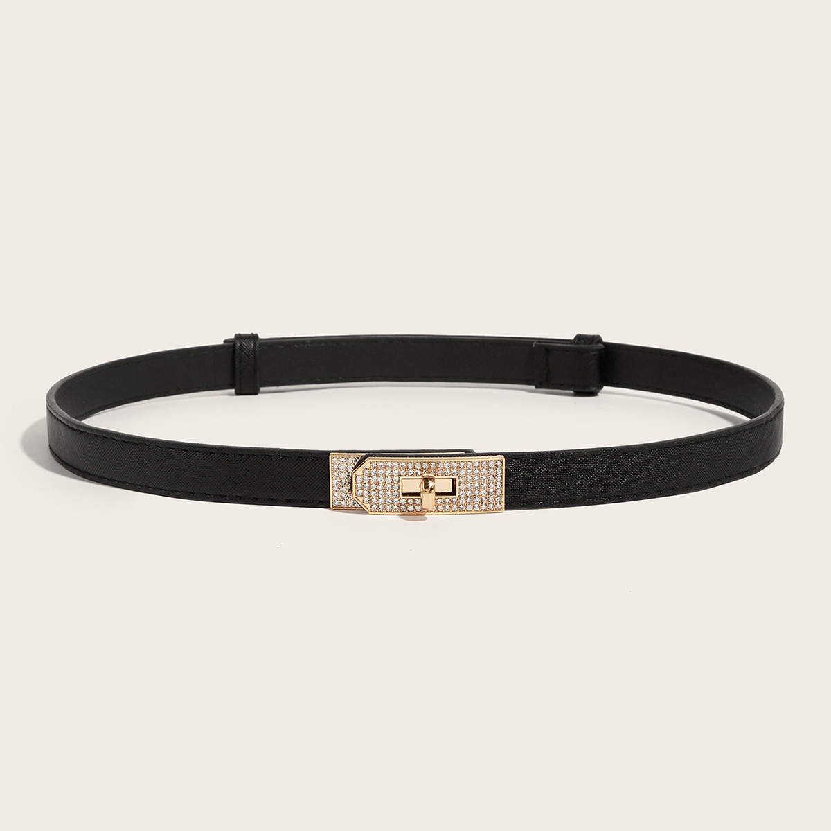 • 라인스톤 버클(골드 버클) 크로스 패턴 잠금 버클 조절 가능한 스트랩(블랙)