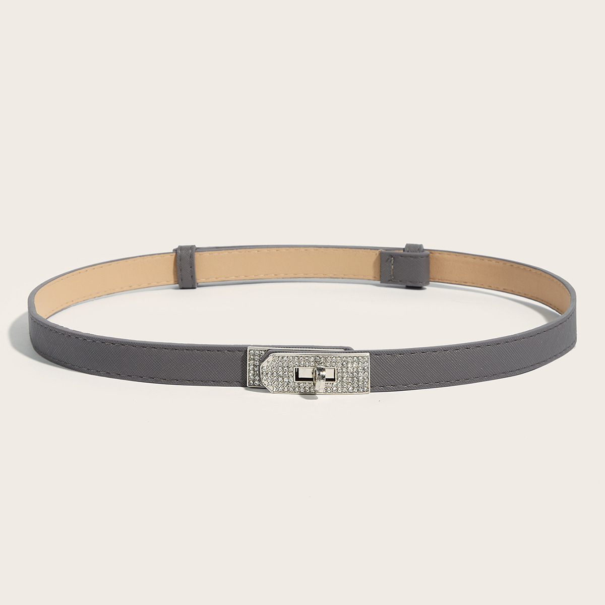 • 라인스톤 버클(실버 버클) 크로스 패턴 잠금 버클 조절 가능한 스트랩(회색)