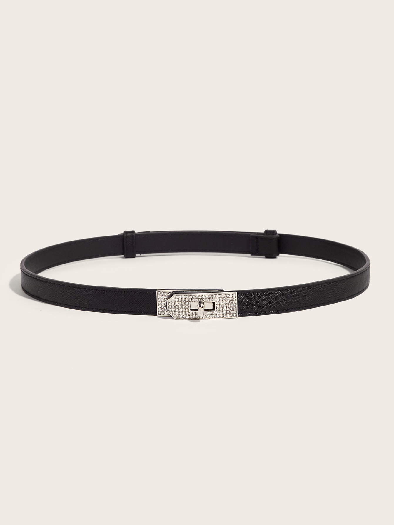 • 라인스톤 버클(실버 버클) 크로스 패턴 잠금 버클 조절 가능한 스트랩(블랙)