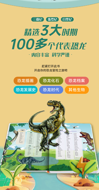 말하는 오디오 북 공룡인지 백과 사전 3 차원 그림 그림 방수 방오 충전 포인트 읽기스토어 가기