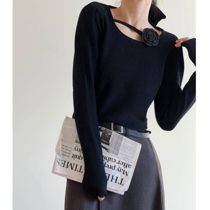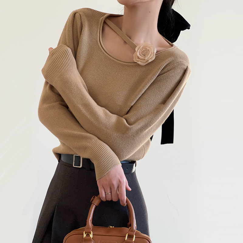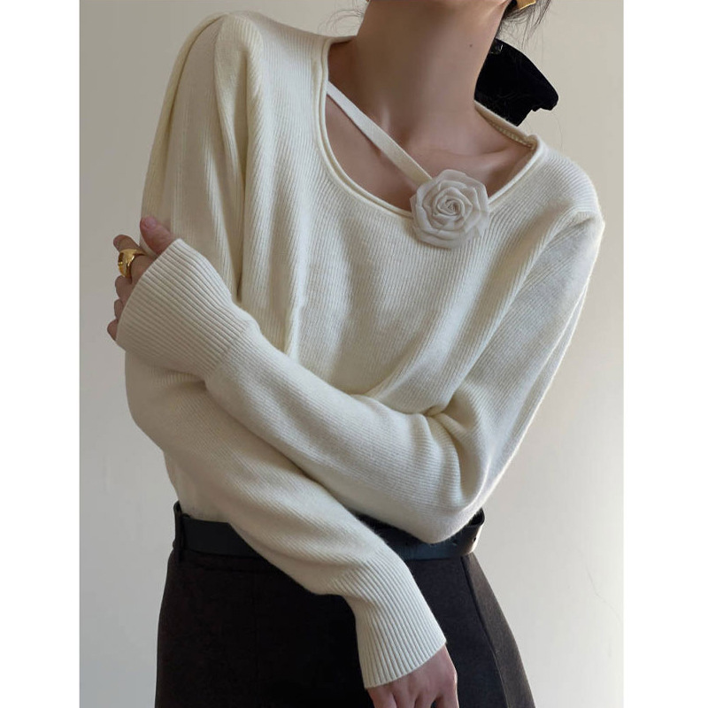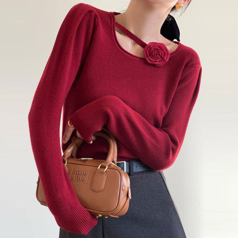 레드 크리스마스 니트 카디건 2024 봄 새로운 사교계 스타일 디자인 스퀘어 칼라 풀오버 내부 스웨터스토어 가기