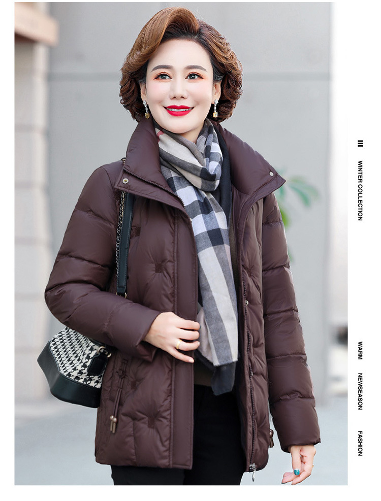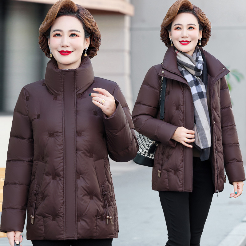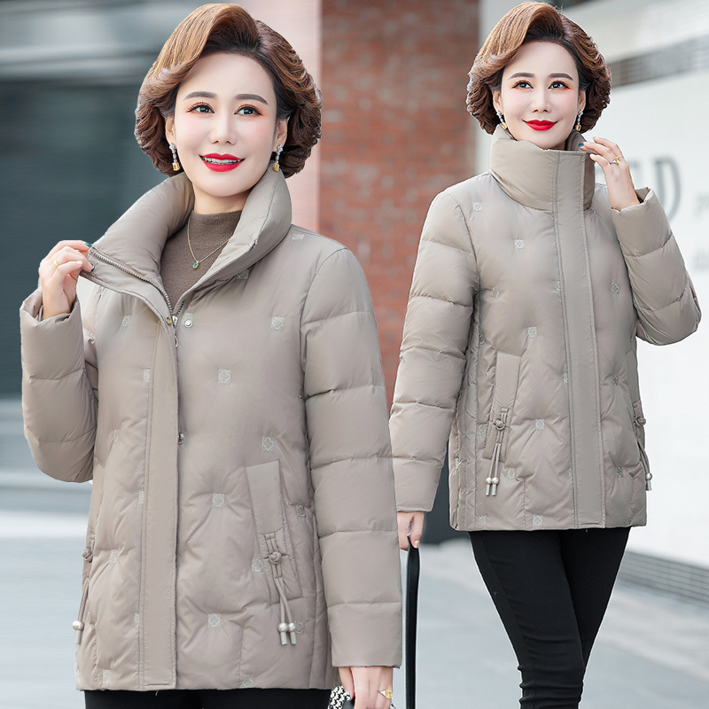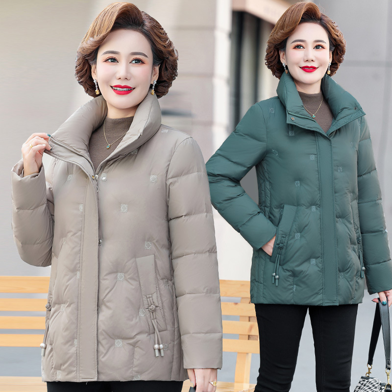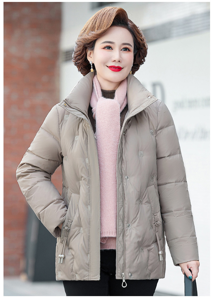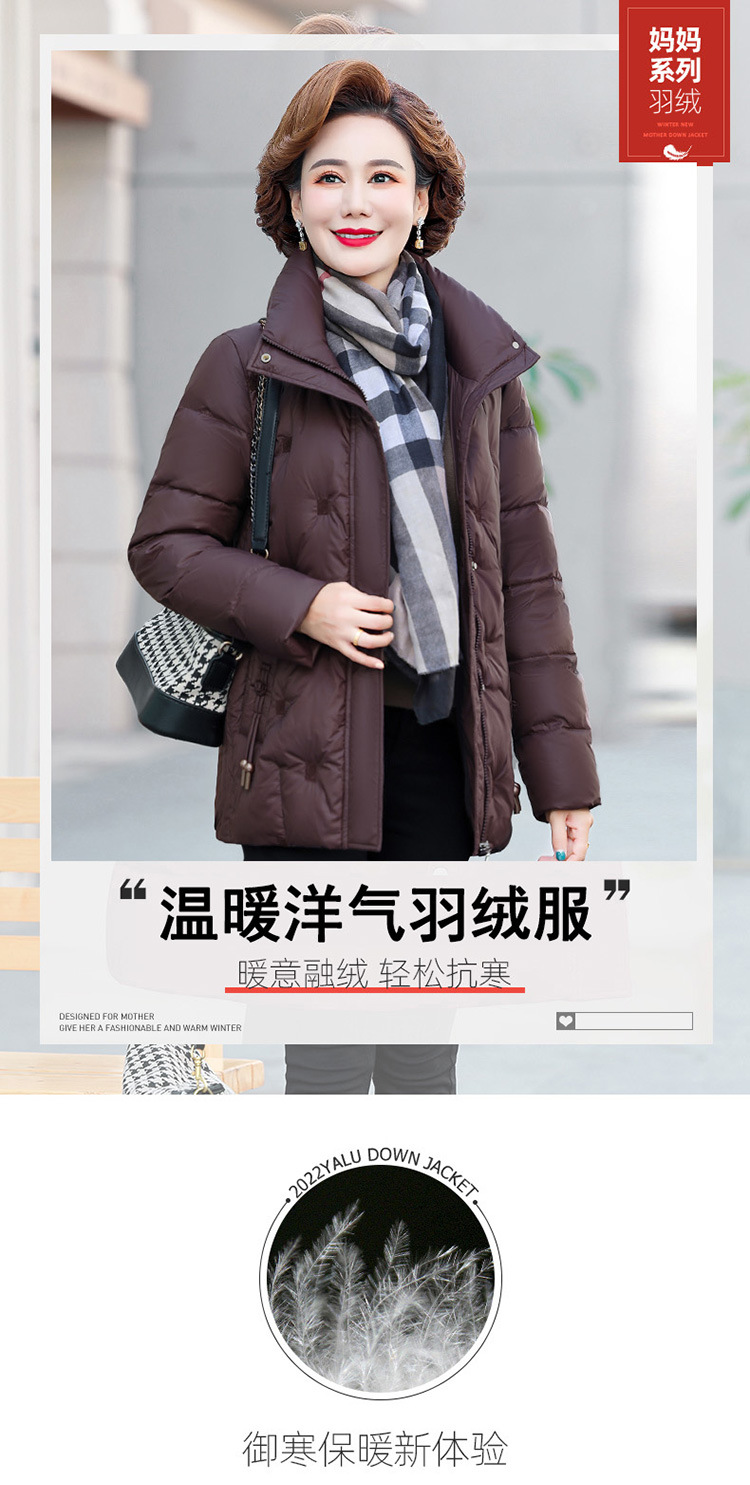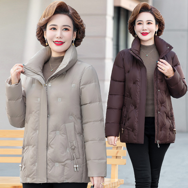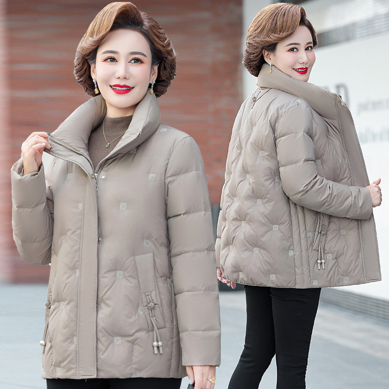 중년 및 노인 어머니 다운 재킷 90 흰색 오리 다운 짧은 경량 유행 유행 플러스 사이즈 두꺼운 따뜻한 코트스토어 가기