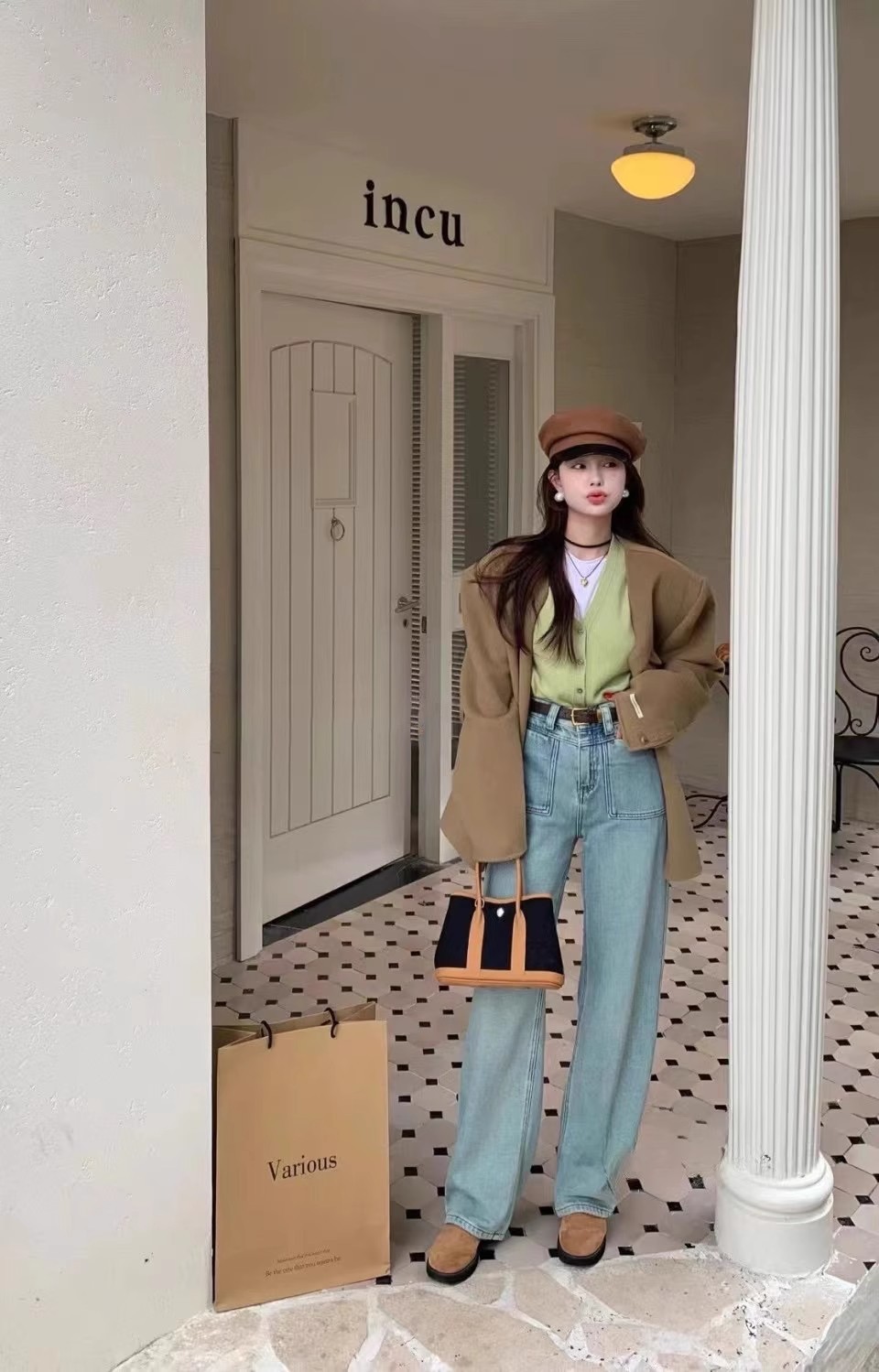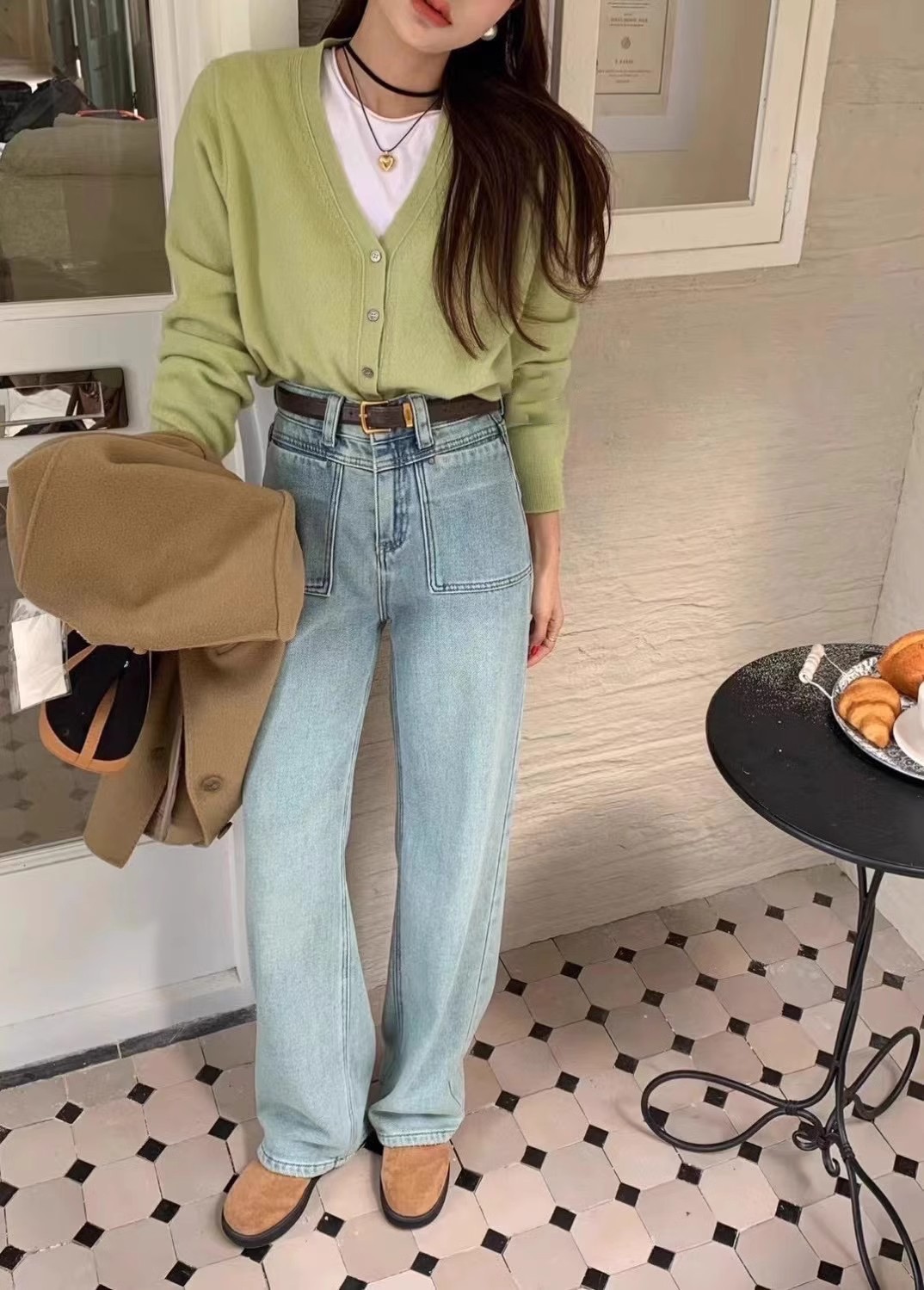 밝은 색상의 스트레치 스트레이트 청바지 여성의 높은 허리 2024 봄 새로운 느슨한 슬리밍 올 매치 와이드 다리 바지스토어 가기